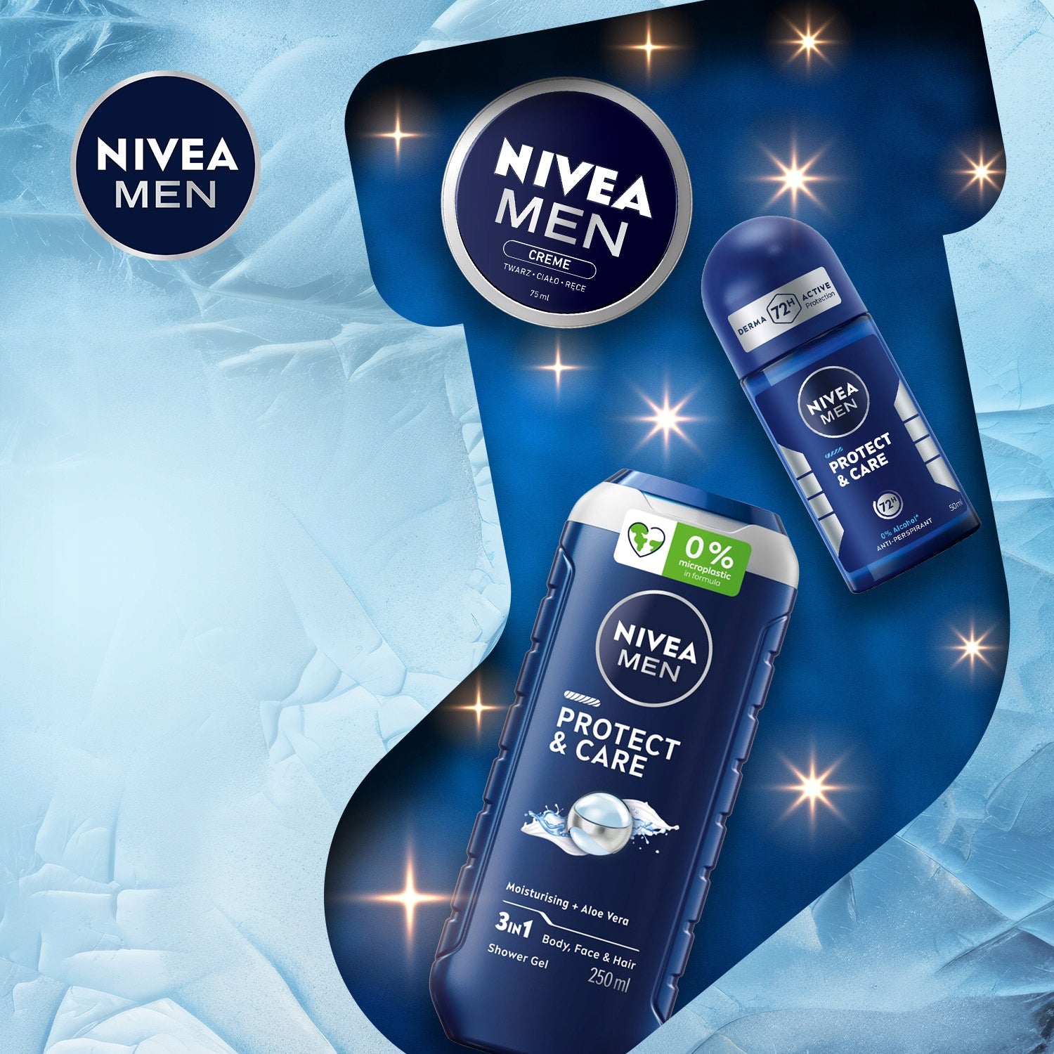 - NIVEA MEN PROTECT & CARE 3-in-1 Dušo želė: Ši universali priemonė tinka kūnui, veidui ir plaukams. Praturtinta natūraliu alaviju, ji švelniai valo odą ir plaukus, kartu intensyviai drėkindama ir saugodama nuo išsausėjimo.