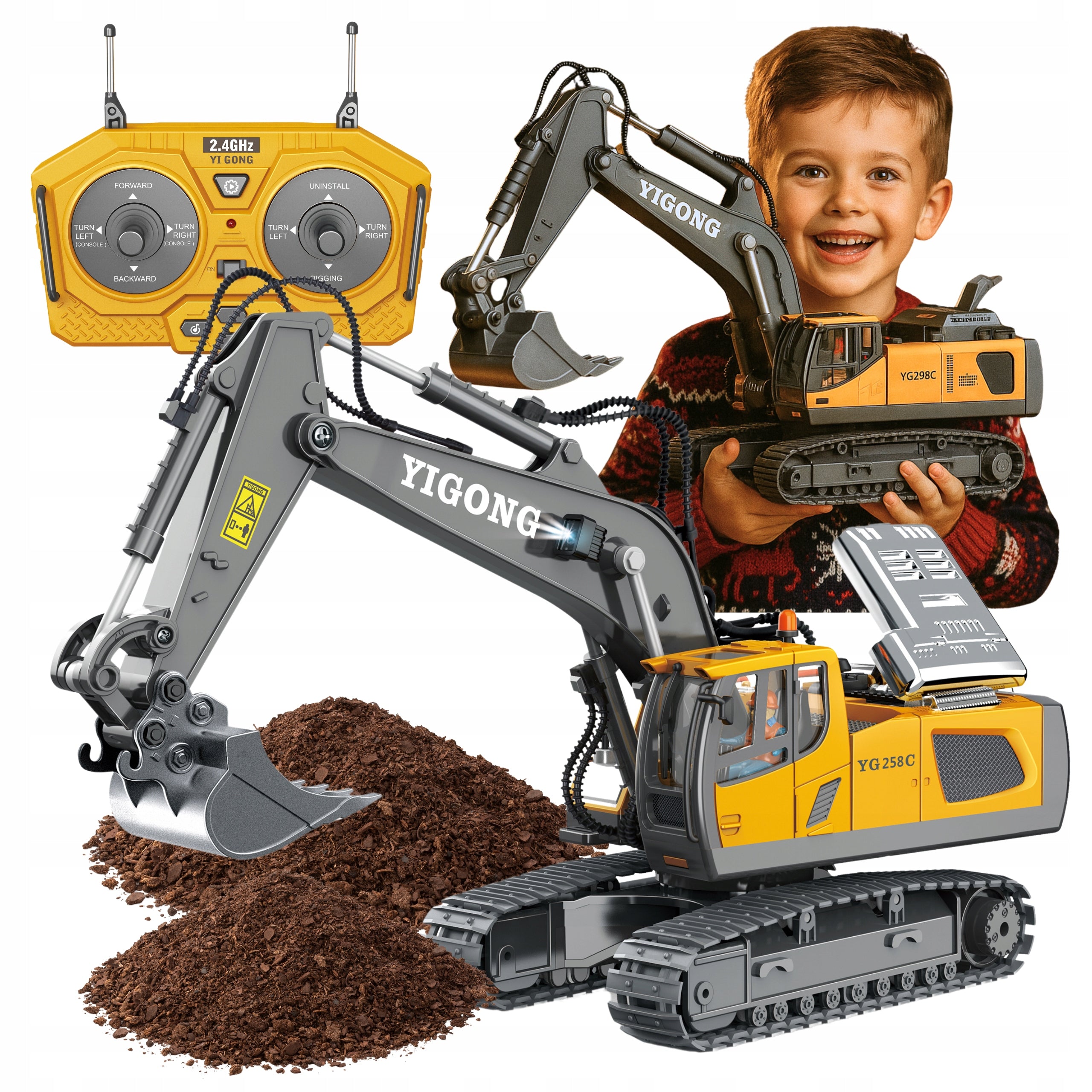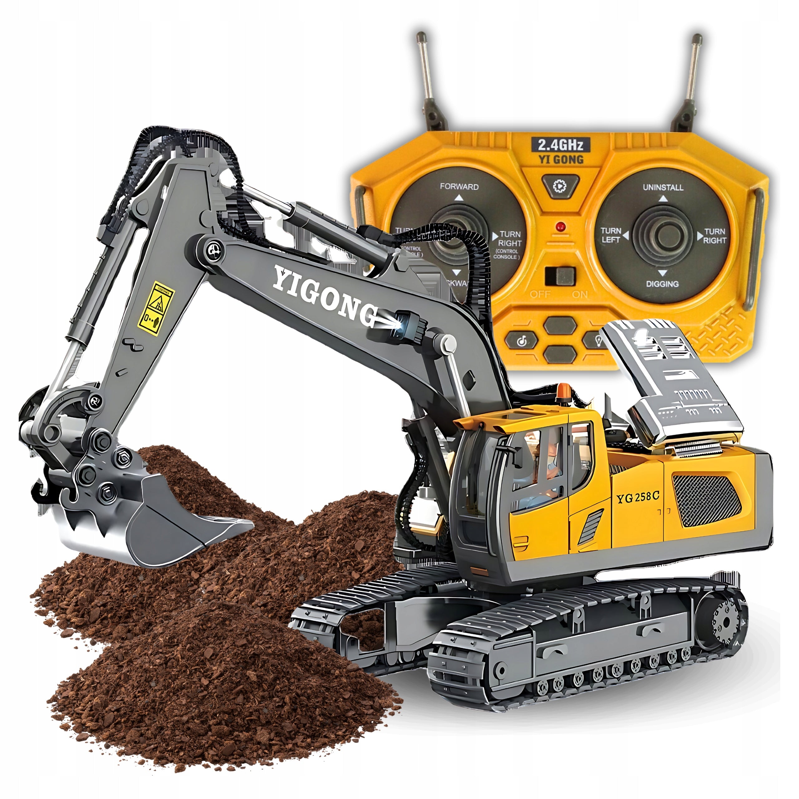 - 1 x Nuotoliniu būdu valdoma koparka RC