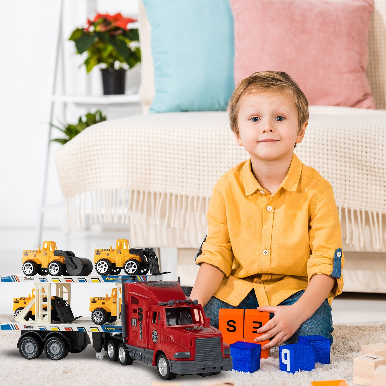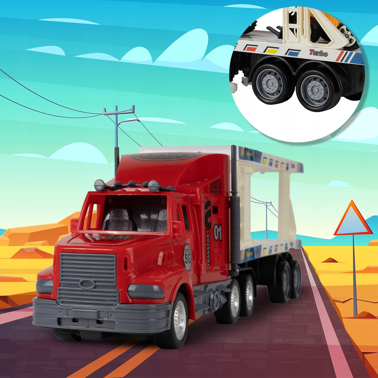 Atraskite nepaprastą nuotoliniu būdu valdomą žaislinį vilkiką su priekaba, sukurtą mažiesiems transporto priemonių entuziastams! Šis rinkinys, kuriame yra detaliai atkartotas vilkikas, talpi priekaba ir keturios skirtingos statybos transporto priemonės, suteiks valandų valandas smagios ir lavinančios žaidimų patirties. Žaislas skatina vaikų vaizduotę, motorinius įgūdžius ir rankų bei akių koordinaciją, leidžiantis jiems pasijusti tikrais statybų aikštelės ar kelių transporto valdytojais. Visi elementai pagaminti iš aukštos kokybės plastiko, užtikrinant ilgaamžiškumą ir saugumą nuo 3 metų amžiaus.