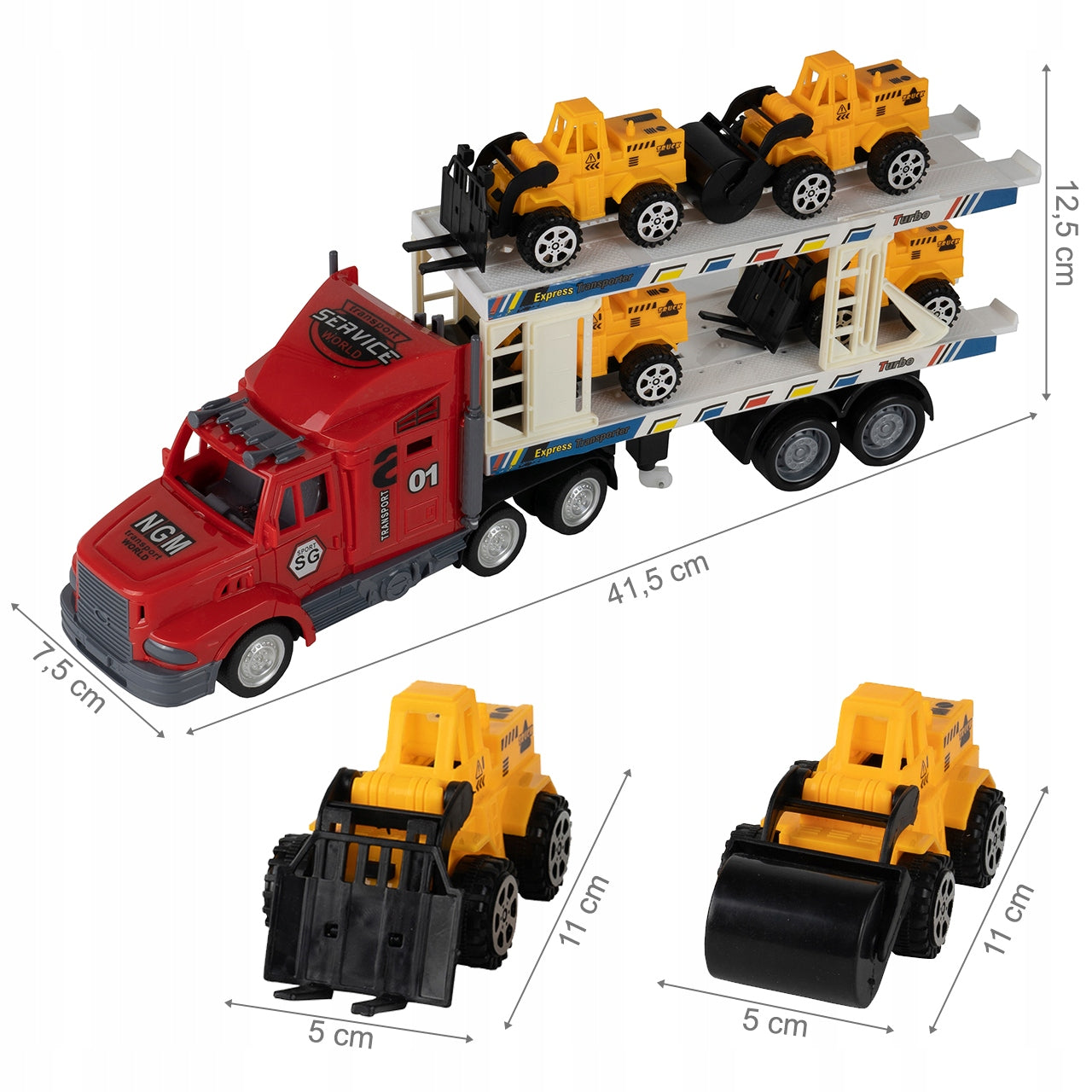 - Į komplektą įeina net 4 skirtingos statybinės transporto priemonės, didinančios žaidimo galimybes.