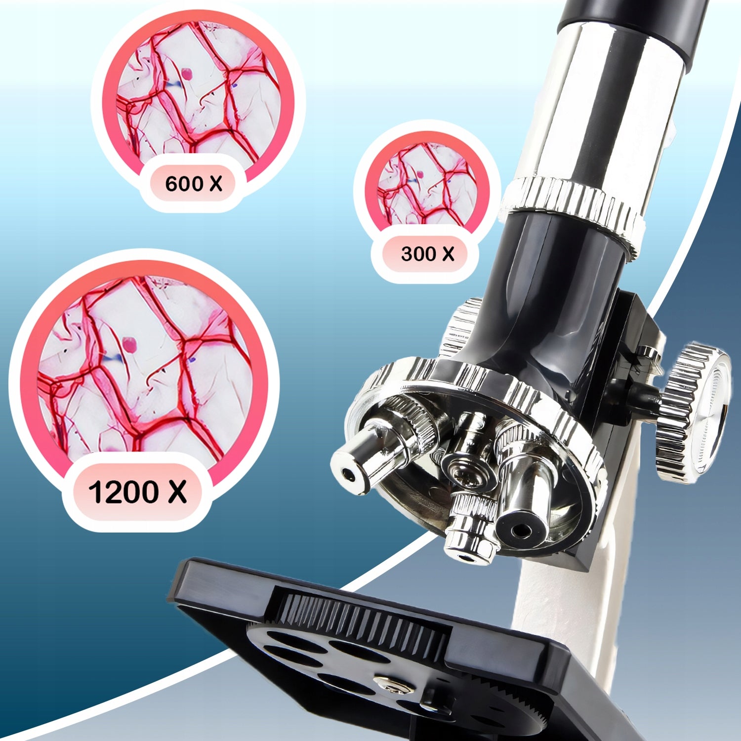 OPTINIS MIKROSKOPAS ZOOM 1200X LABORATORINIS RINKINYS 3 OBJEKTYVAIS + AKSESUARAI