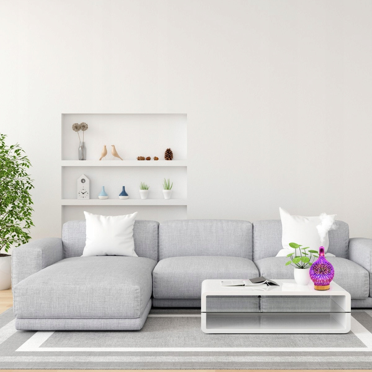 Šis oro drėkintuvas yra ne tik funkcionalus, bet ir puikus interjero akcentas. Jo modernus, minimalistinis dizainas lengvai įsilieja į bet kokį stilių. Unikalus 14 spalvų RGB apšvietimo režimų pasirinkimas leidžia pritaikyti apšvietimą pagal jūsų nuotaiką ar interjero dizainą, sukuriant nepakartojamą atmosferą. Be to, prietaisas gali būti naudojamas kaip subtili naktinė lemputė, skleidžianti švelnią, šiltą šviesą, kuri padeda atsipalaiduoti prieš miegą ir sukuria saugumo jausmą.