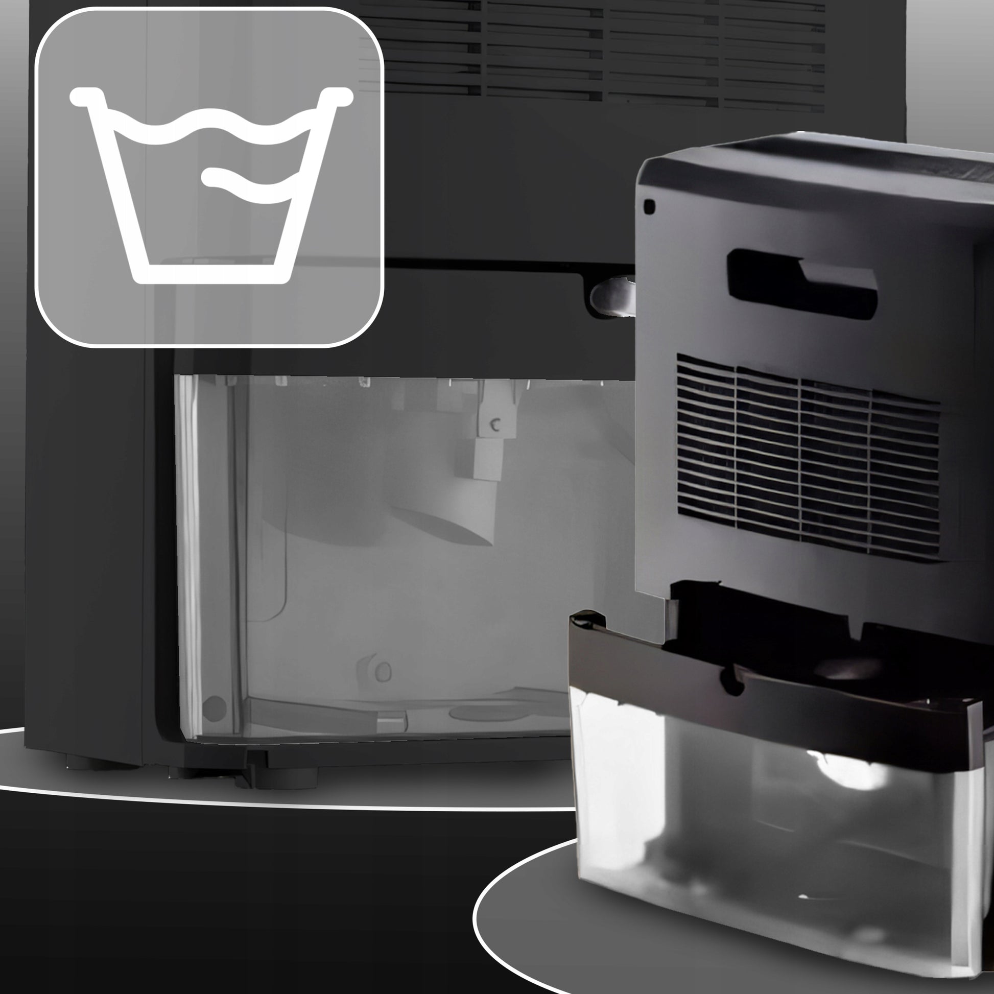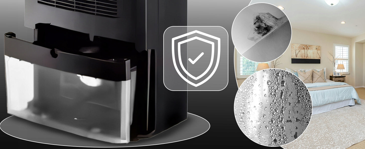Didelis 2200 ml išimamas vandens rezervuaras leidžia prietaisui veikti ilgą laiką be poreikio jį nuolat ištuštinti. Kai rezervuaras prisipildo, prietaisas automatiškai išsijungia, o patogus raudonas LED indikatorius praneša apie būtinumą jį ištuštinti. Taip pat yra galimybė prijungti nuolatinio vandens išleidimo žarnelę, leidžiančią vandeniui nutekėti tiesiai į nutekamąją sistemą, nenaudojant rezervuaro. Tyli veiklena, siekianti vos mažiau nei 35 dB, užtikrina, kad prietaisas netrukdys Jūsų poilsiui ar darbui. Ergonomiška rankena leidžia lengvai perkelti prietaisą į kitą vietą.