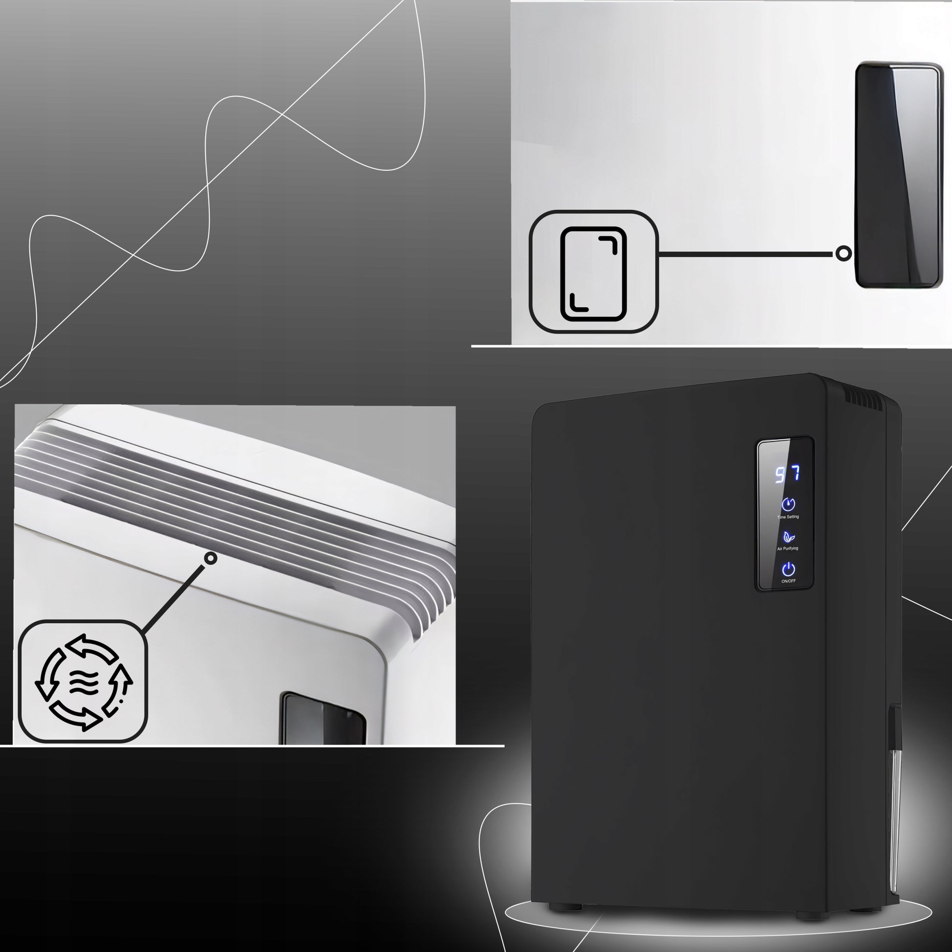 Oro sausintuvas 2200ml Tylus, Efektyvus Drėgmės Sugerėjas Laikmatis LCD LED