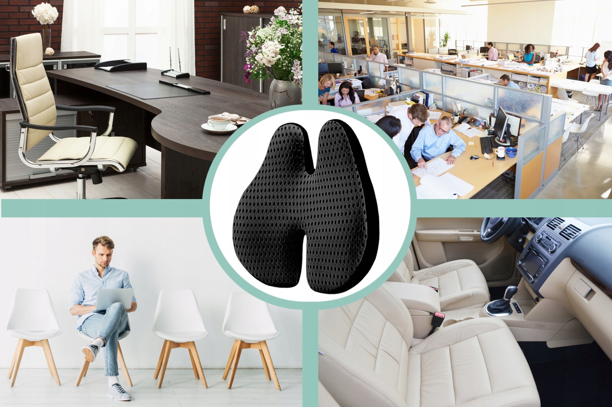 - Ženkliai padidina komfortą sėdint, sumažina nugaros nuovargį.