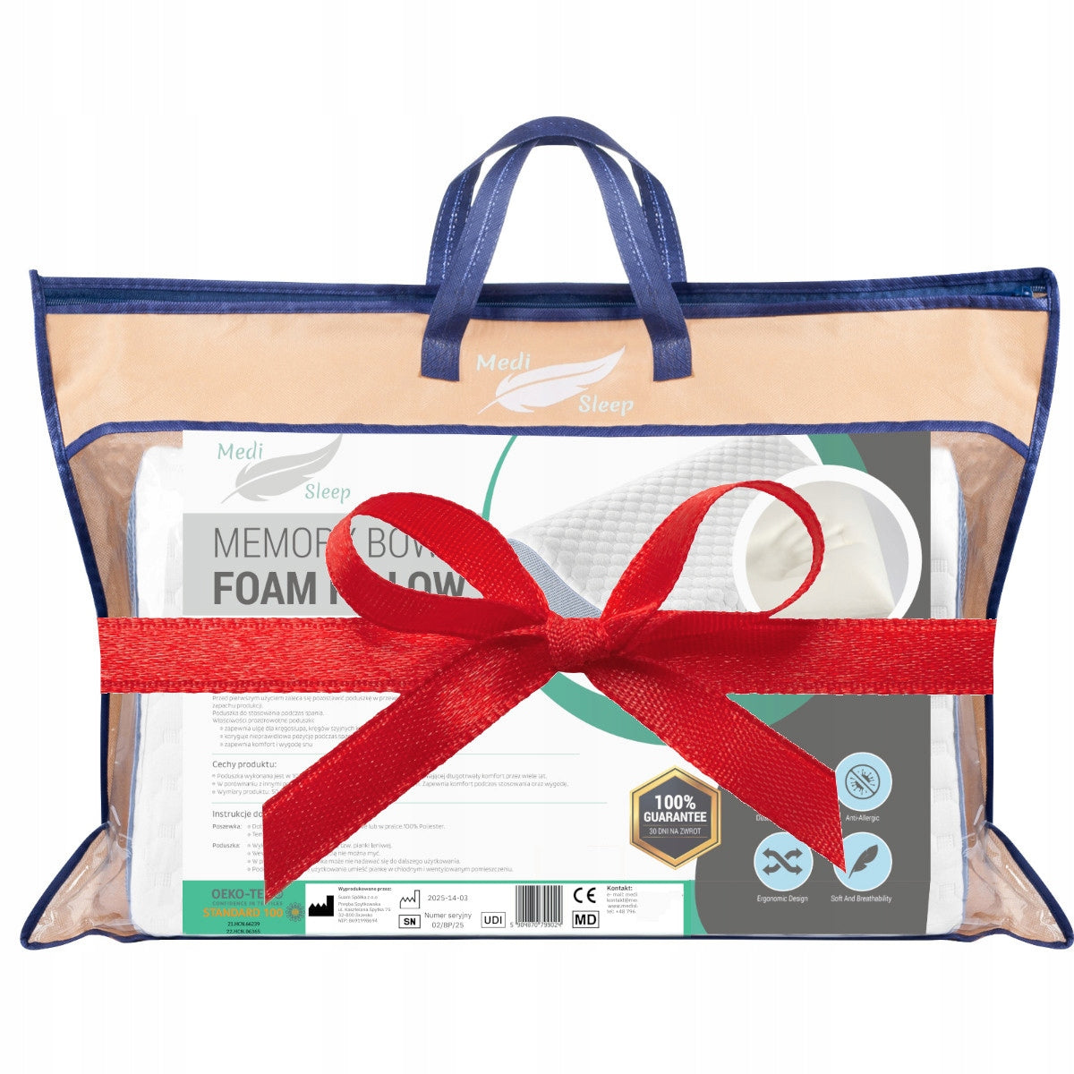 - Profiluota „Medi Sleep“ ortopedinė pagalvė iš termoelastinio „memory“ putų užpildo.