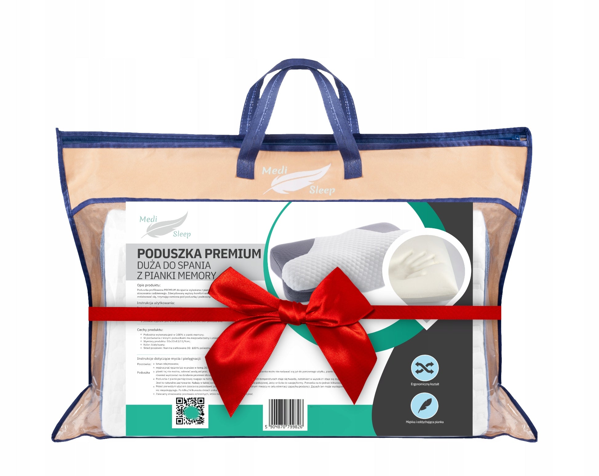 - 1 x "Medi Sleep" profiliuota ortopedinė pagalvė su MEMORY putplasčio užpildu.