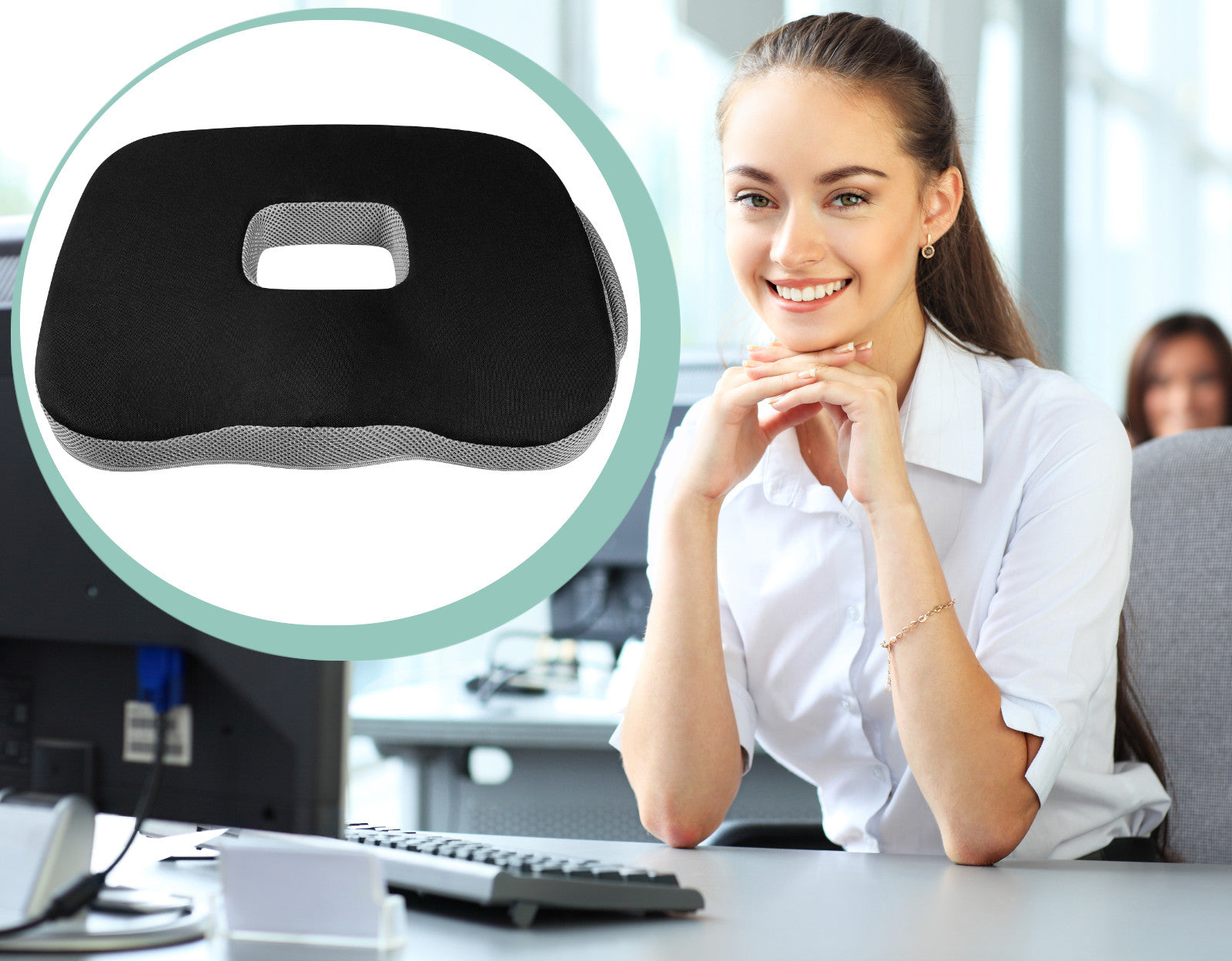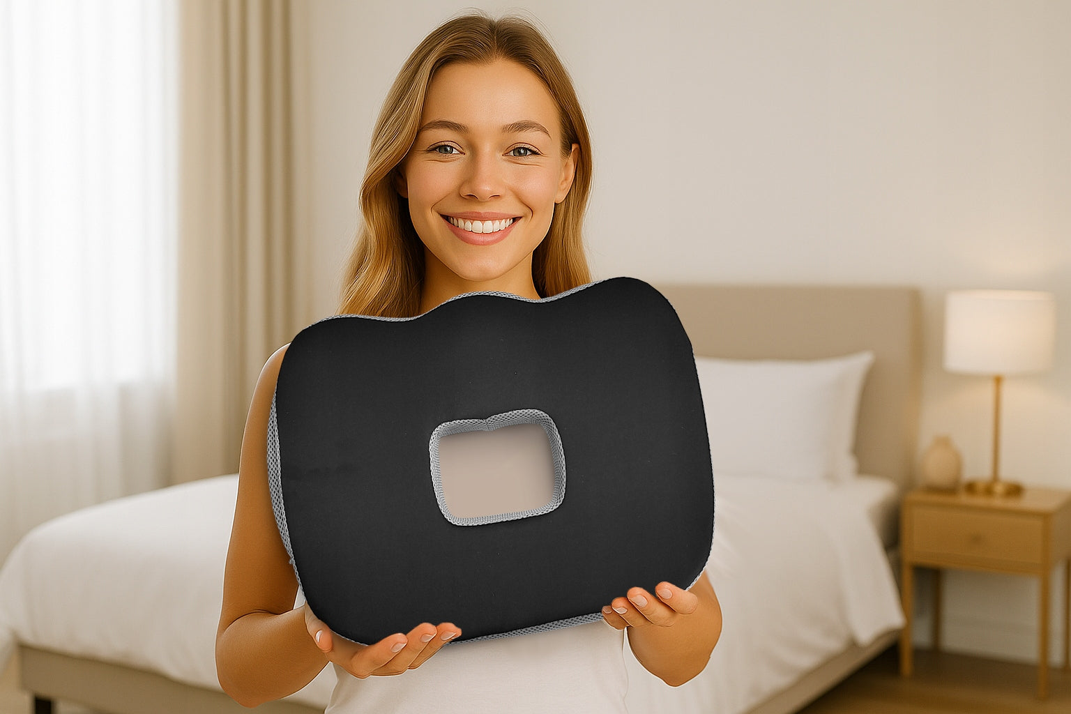 Ši pagalvėlė yra ne tik patogi, bet ir naudinga Jūsų laikysenai. Jos unikalus dizainas su specialiai sukurtu išpjovimu viduryje leidžia orui laisvai cirkuliuoti, apsaugodamas nuo prakaitavimo, ir sumažina spaudimą jautriose vietose, todėl yra ypač tinkama žmonėms, turintiems hemorojaus problemų. Ergonomiškos formos šoninės išpjovos stabilizuoja dubenį ir padeda palaikyti taisyklingą kūno padėtį, net ir ilgai sėdint. Neslystantis pagrindas garantuoja, kad pagalvėlė išliks vietoje, užtikrindama stabilumą važiuojant ar dirbant.