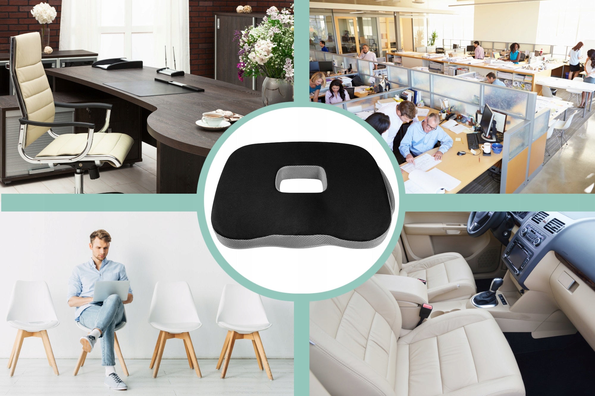 - Universalumas: Tinka automobiliui, biuro kėdei, namų kėdei ar bet kokiam kitam sėdėjimo paviršiui.