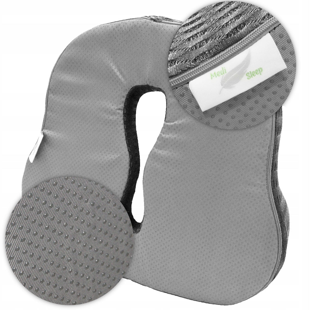 „Medi Sleep“ pagalvės užvalkalas pagamintas iš specialaus, plono ir pralaidaus orui audinio (panašaus į sportinę aprangą), kuris užtikrina puikią oro cirkuliaciją. Tai apsaugo nuo prakaitavimo ir diskomforto net ilgai naudojantis. Pagalvės apačia turi neslystančias gumines detales, kurios garantuoja stabilumą ant bet kokio paviršiaus – nesvarbu, ar tai automobilio sėdynė, biuro kėdė, ar namų sofa. Stilingas dizainas ir neutrali pilka spalva suteikia jai elegancijos, todėl ji puikiai įsilieja į bet kokią aplinką.
