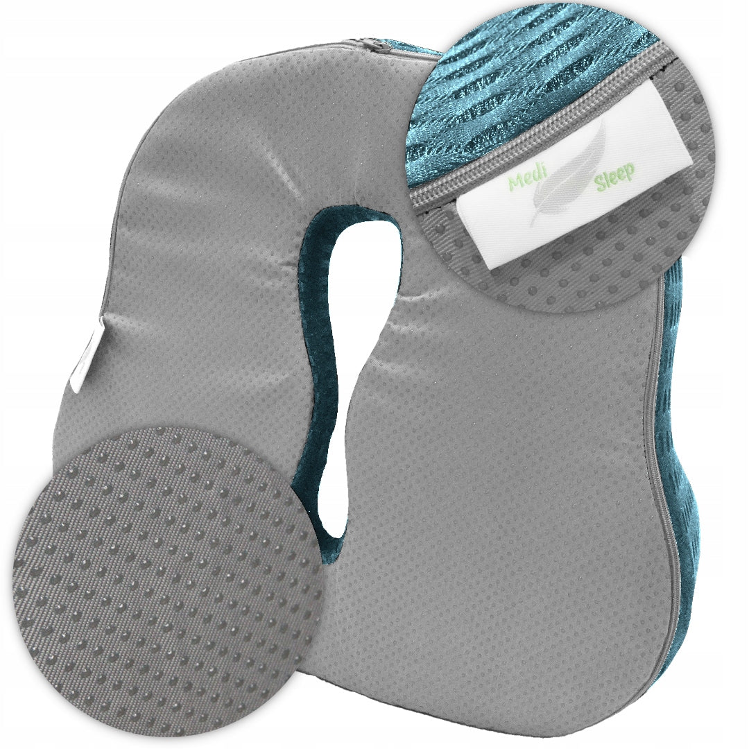 - Stilingas dizainas ir neslystantis pagrindas: Elegantiška mėlyna spalva dera prie bet kokio interjero, o specialus neslystantis pagrindas su gumos iškilimais užtikrina, kad pagalvė išliktų stabiliai savo vietoje.