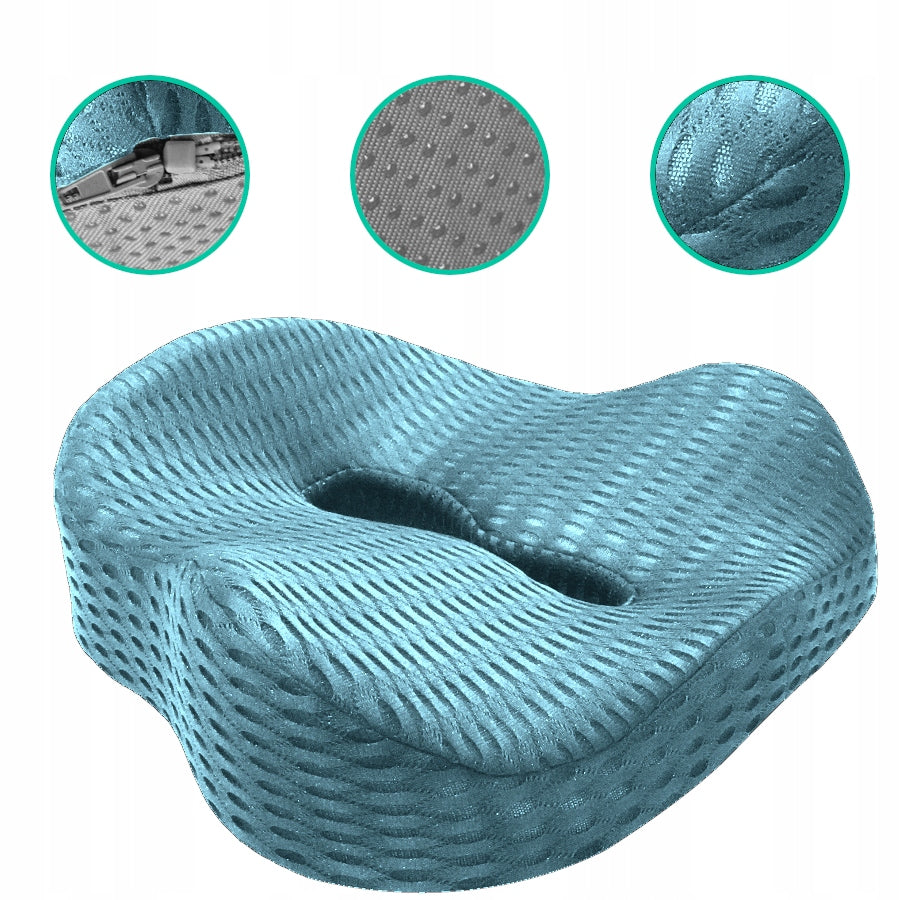 - Ortopedinė sėdėjimo pagalvė su integruotu užvalkalu (mėlynos spalvos).