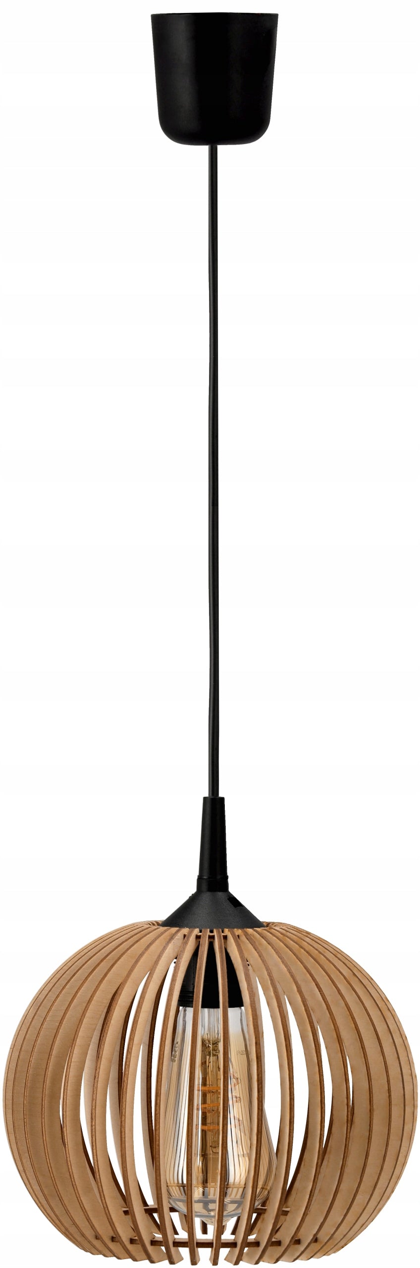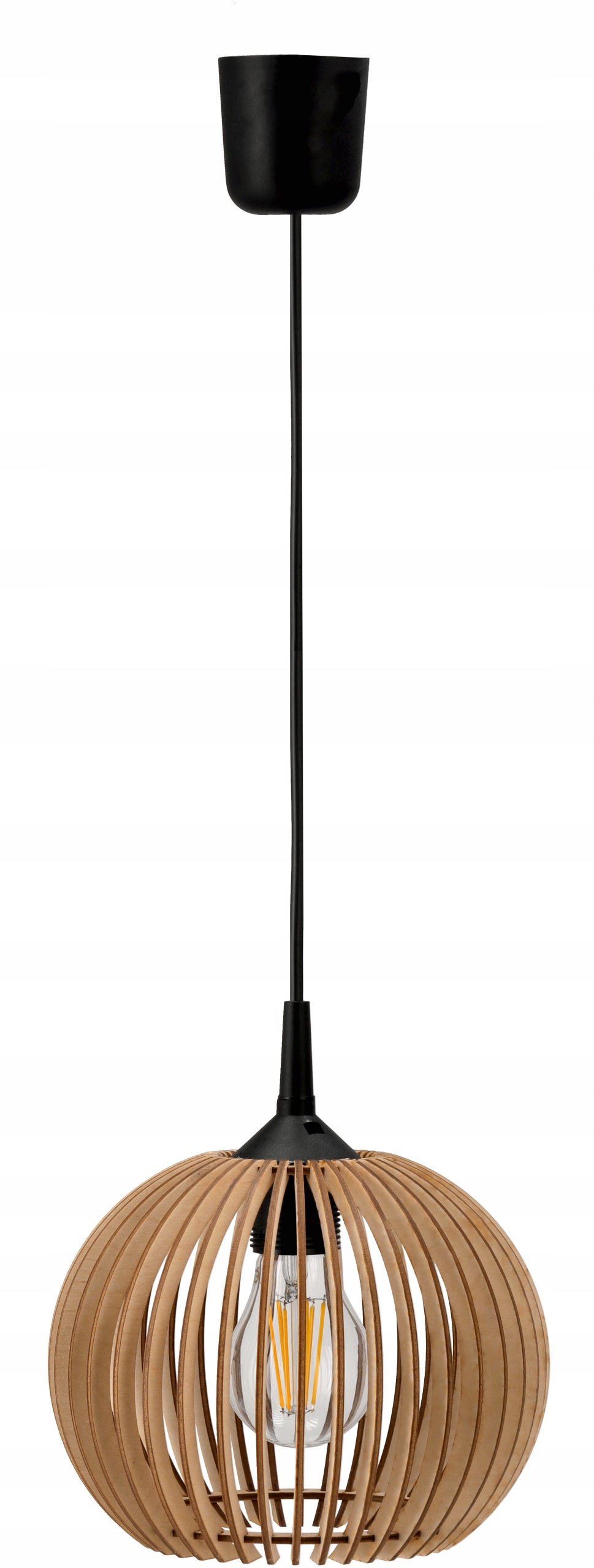 - Pakabinamas lubinis šviestuvas su E27 lizdu ir medinėmis detalėmis.