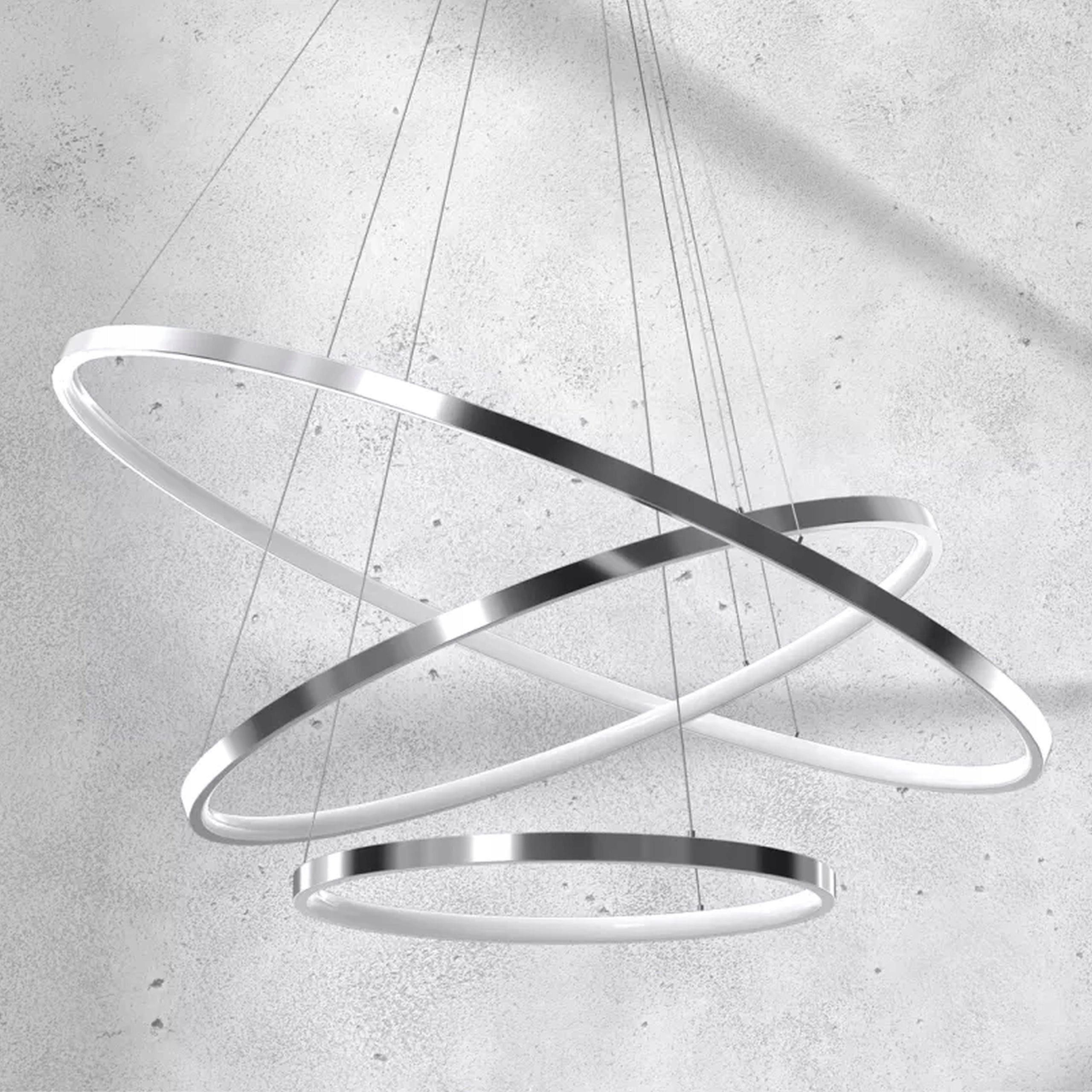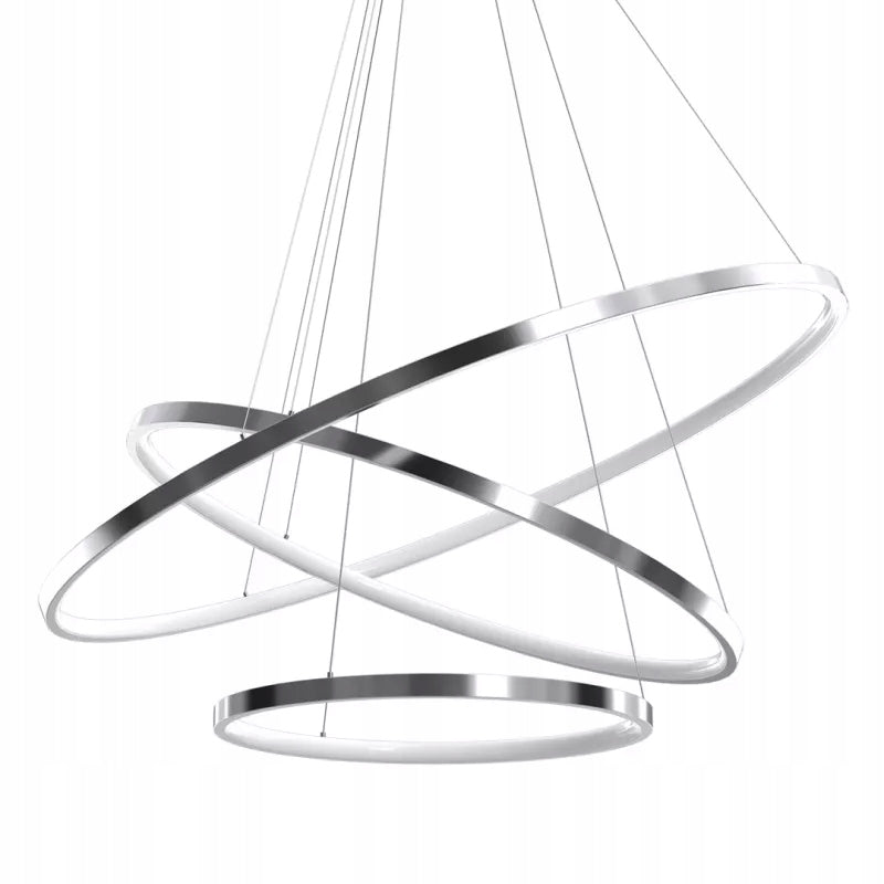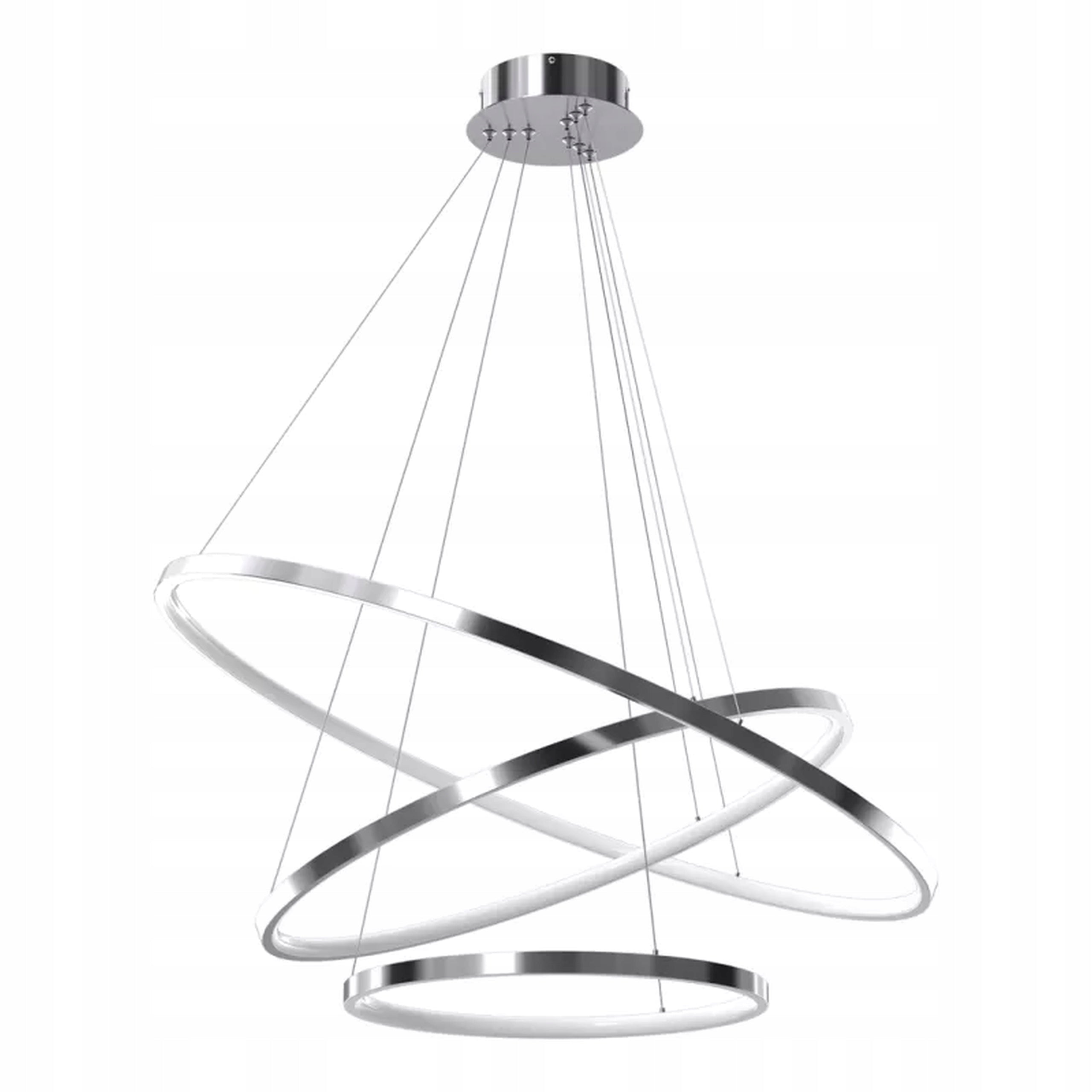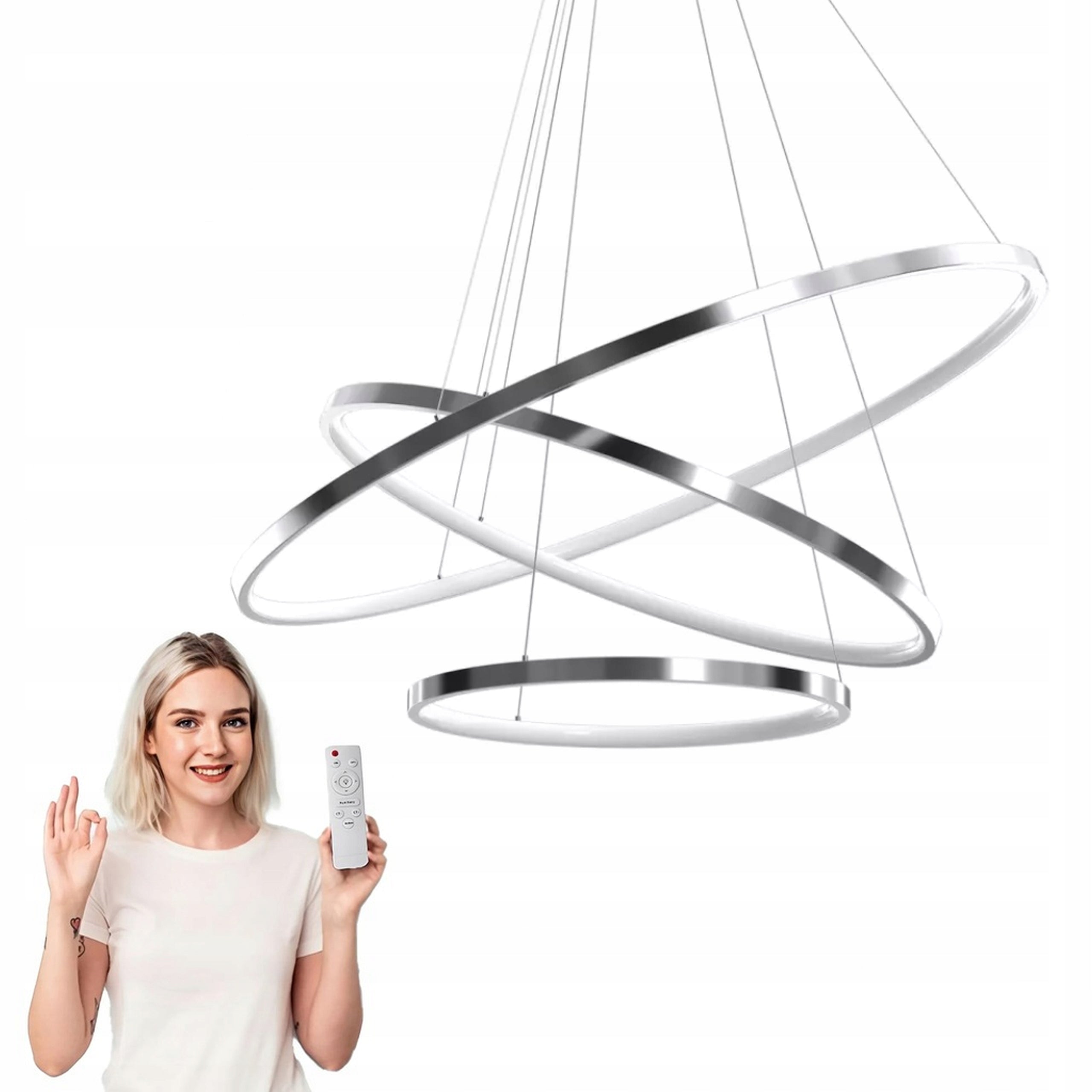 Pakabinamas lubinis šviestuvas sidabrinis chromas, LED liustra su 3 žiedais + nuotolinio valdymo pultelis (reguliuojama spalvos temperatūra)