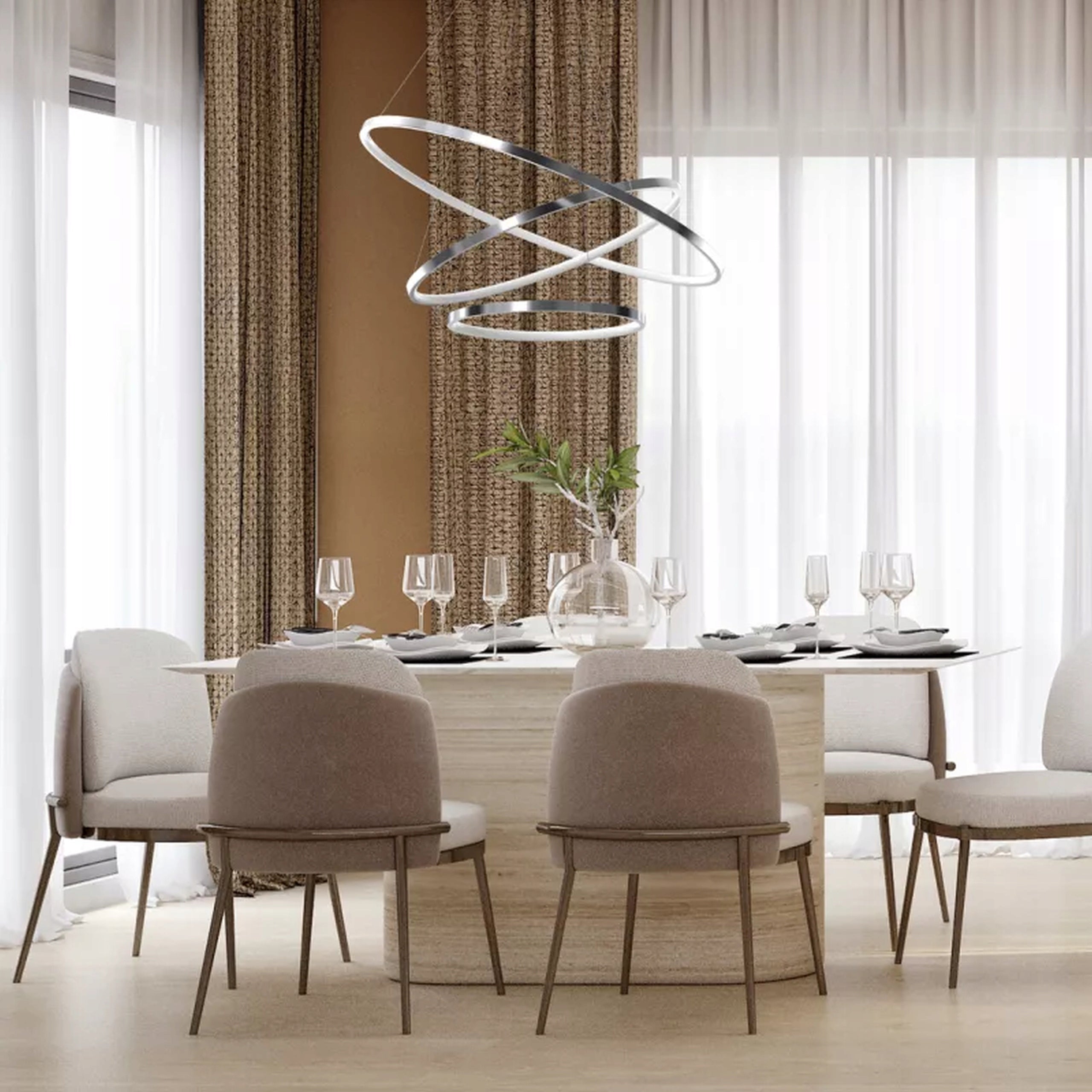 - Modernus ir išskirtinis dizainas: Trims žiedams sukuria įspūdingą vaizdą, tinkantį lofto, minimalistinio ar modernaus stiliaus interjerams.