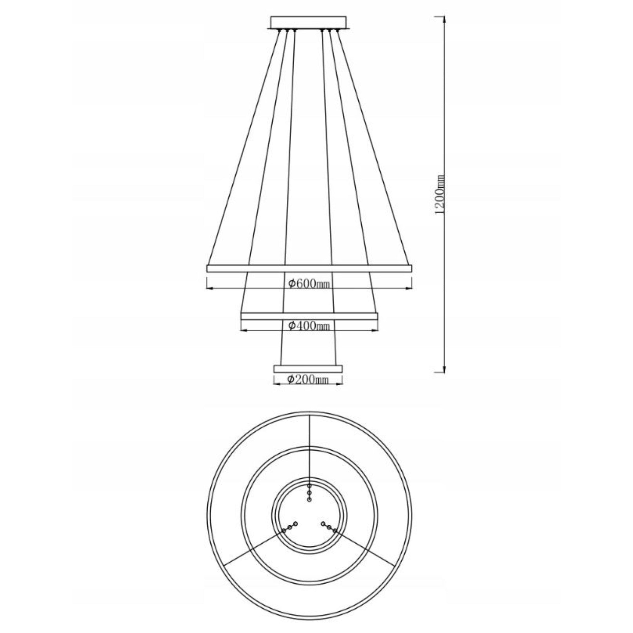 - Moderni pakabinama LED lubinė lempa su trimis žiedais