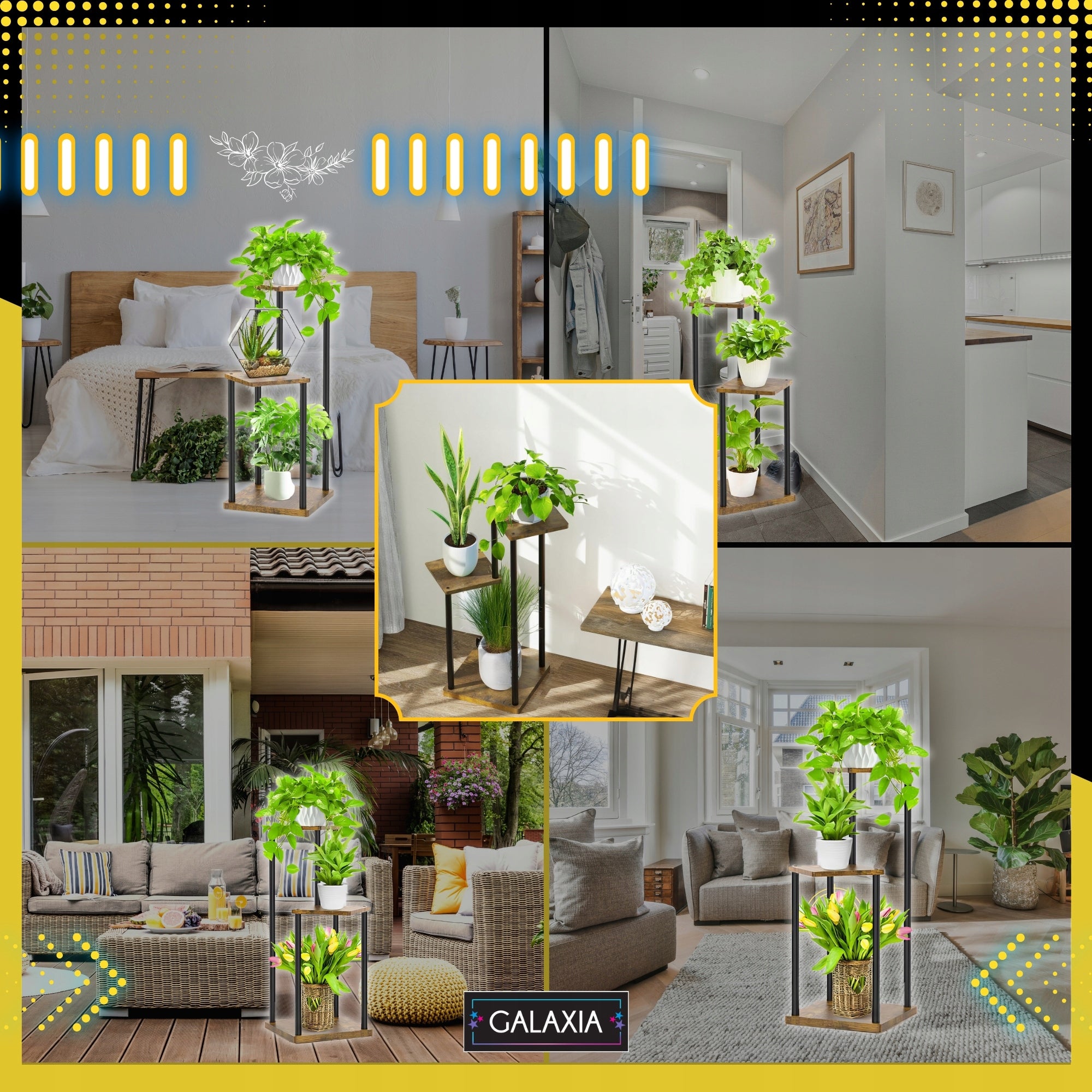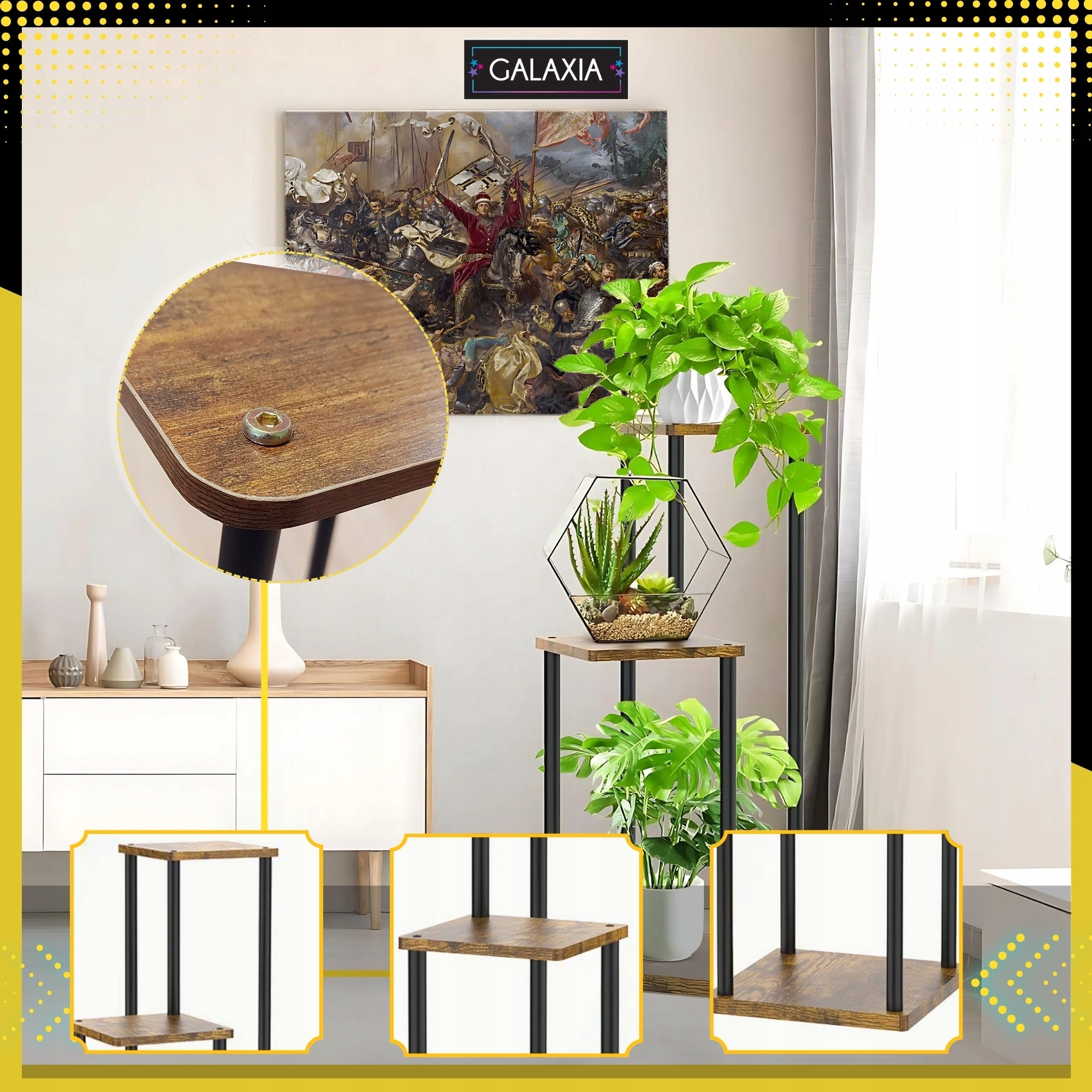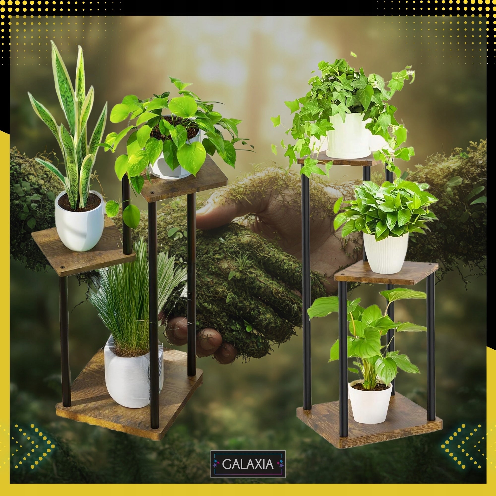 Gėlių stovas pagamintas iš aukštos kokybės medžiagų, kurios užtikrina jo ilgaamžiškumą ir atsparumą aplinkos poveikiui. Tvirtas plieninis rėmas padengtas specialia antikorozine danga, kuri apsaugo nuo rūdžių ir drėgmės, o natūralaus medžio imitacijos lentynos suteikia stilingą ir natūralią išvaizdą. Šis derinys leidžia mėgautis stovu daugelį metų, be rūpesčių naudojant jį tiek viduje, tiek lauke. Maksimali apkrova iki ~40 kg užtikrina, kad galėsite eksponuoti net sunkesnius vazonus.