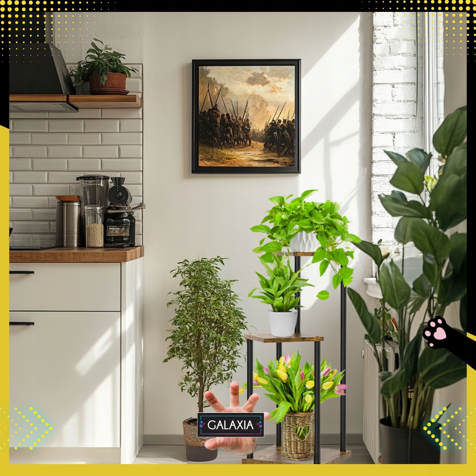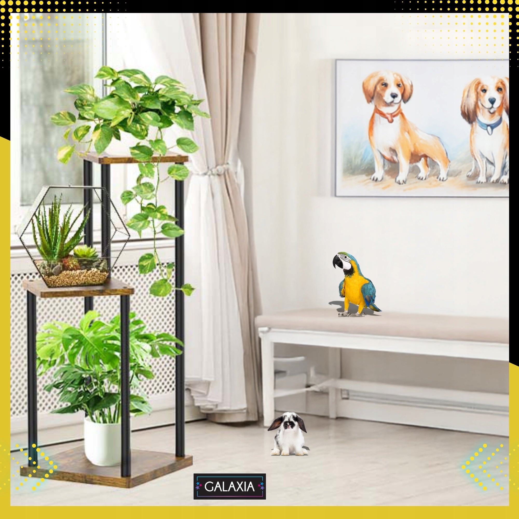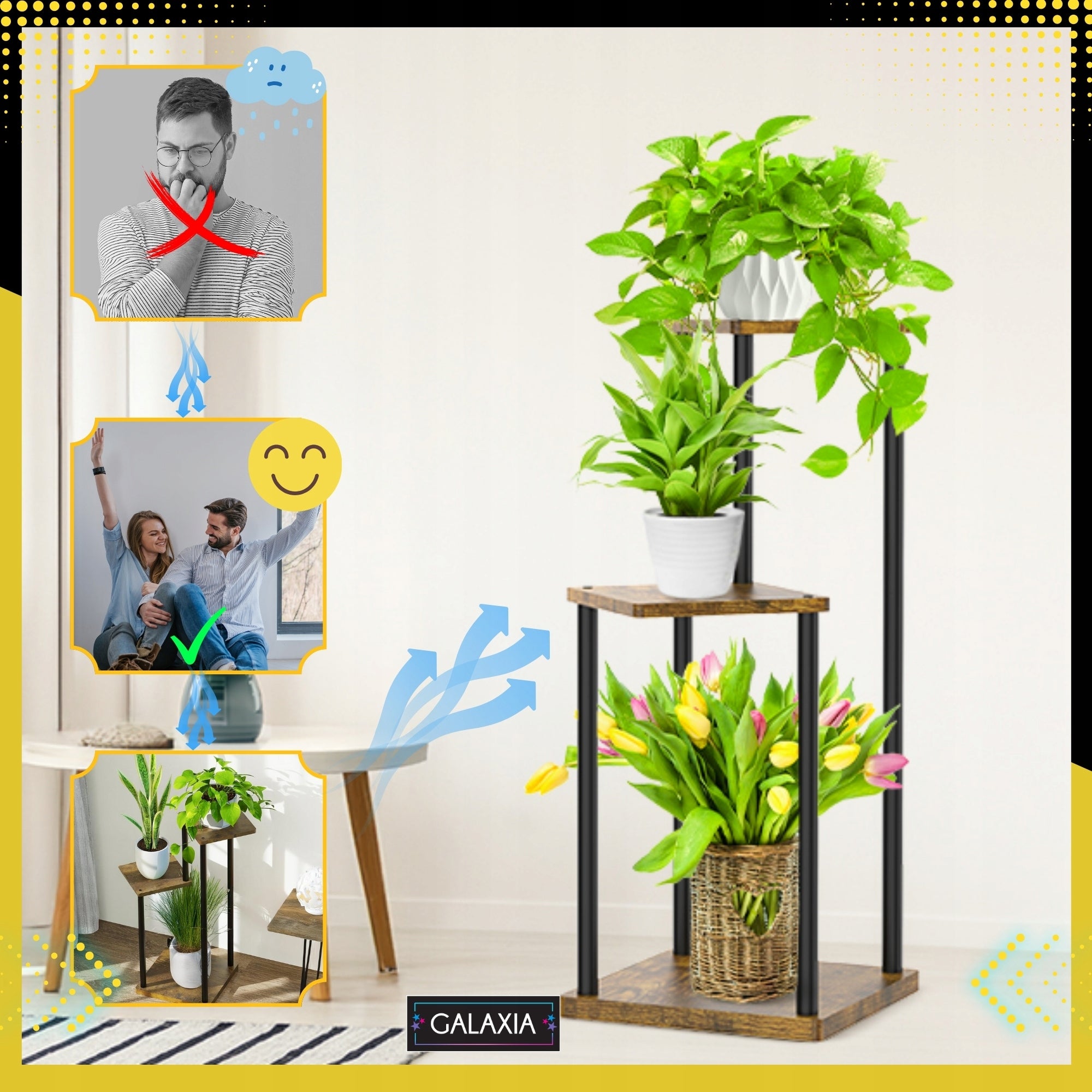 Gėlių stovas pagamintas iš aukštos kokybės medžiagų, kurios užtikrina jo ilgaamžiškumą ir atsparumą aplinkos poveikiui. Tvirtas plieninis rėmas padengtas specialia antikorozine danga, kuri apsaugo nuo rūdžių ir drėgmės, o natūralaus medžio imitacijos lentynos suteikia stilingą ir natūralią išvaizdą. Šis derinys leidžia mėgautis stovu daugelį metų, be rūpesčių naudojant jį tiek viduje, tiek lauke. Maksimali apkrova iki ~40 kg užtikrina, kad galėsite eksponuoti net sunkesnius vazonus.