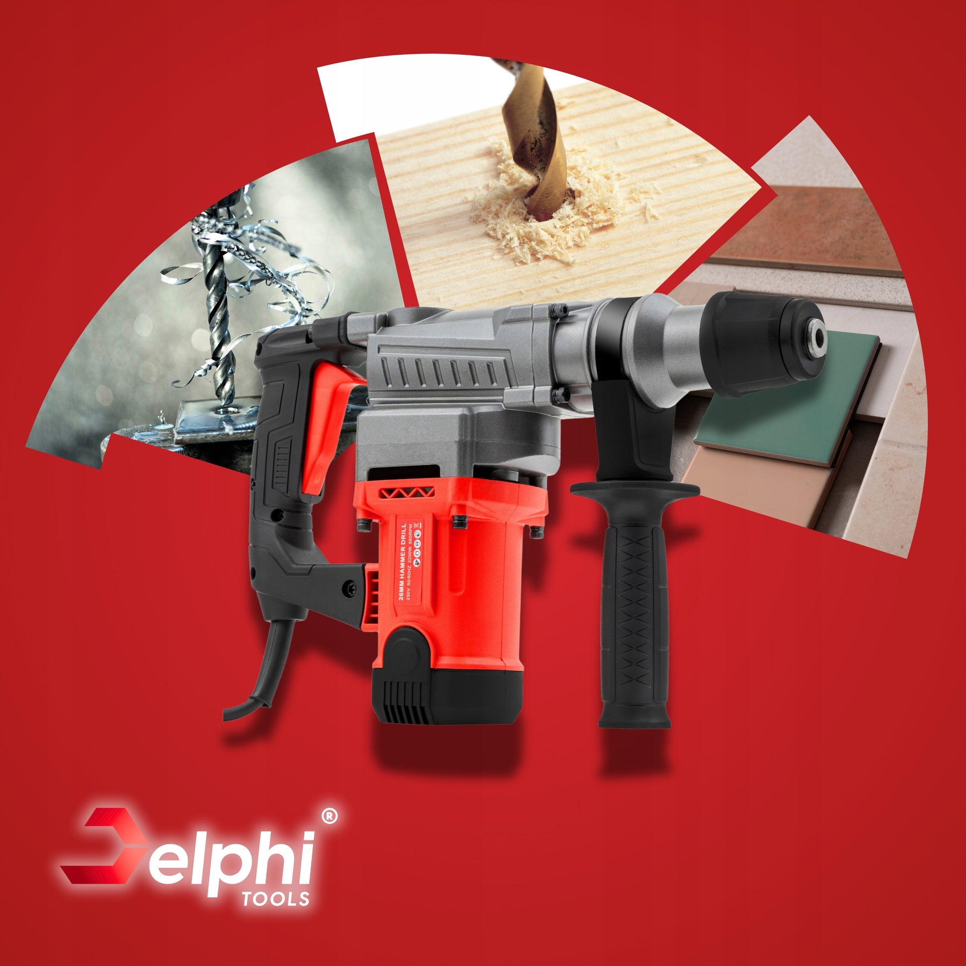 Perforatorius Delphi Tools SDS+ 2200W su 3 funkcijomis, kaltu ir grąžtų rinkiniu lagamine – galingas smūginis gręžtuvas betonavimui, medžiui ir metalui
