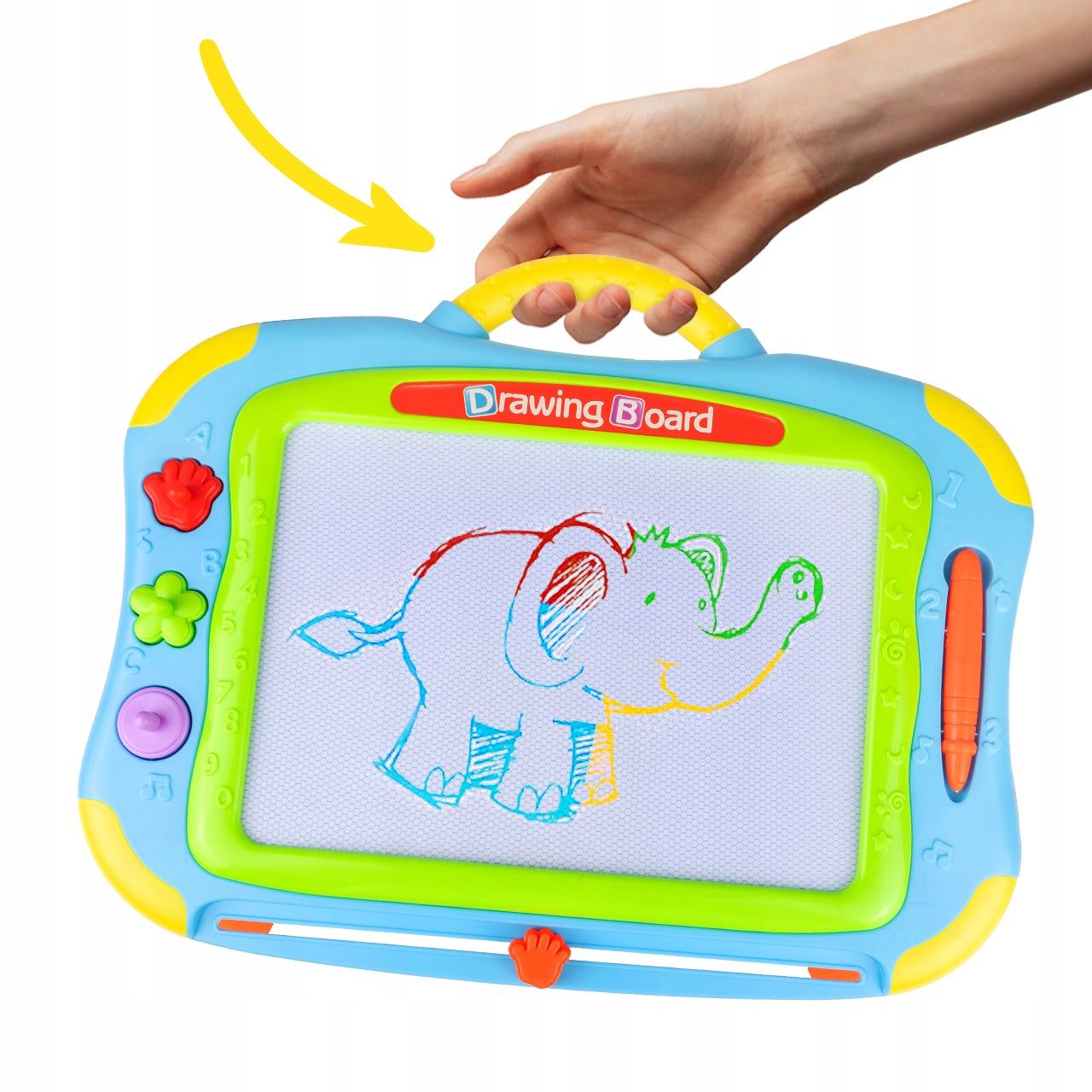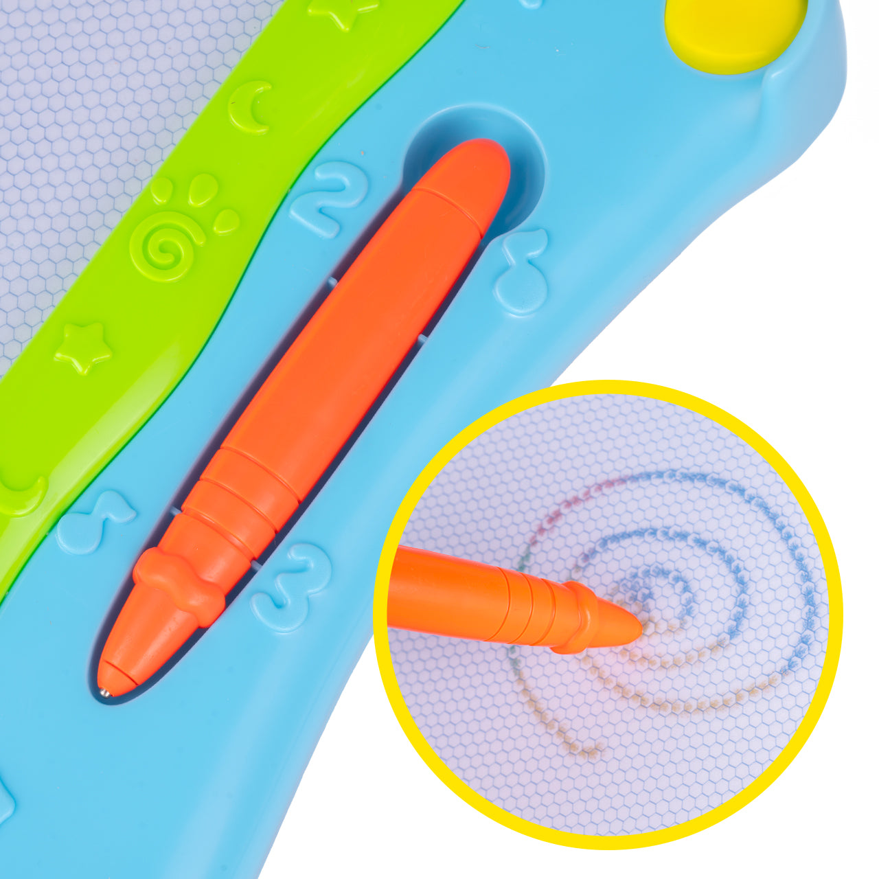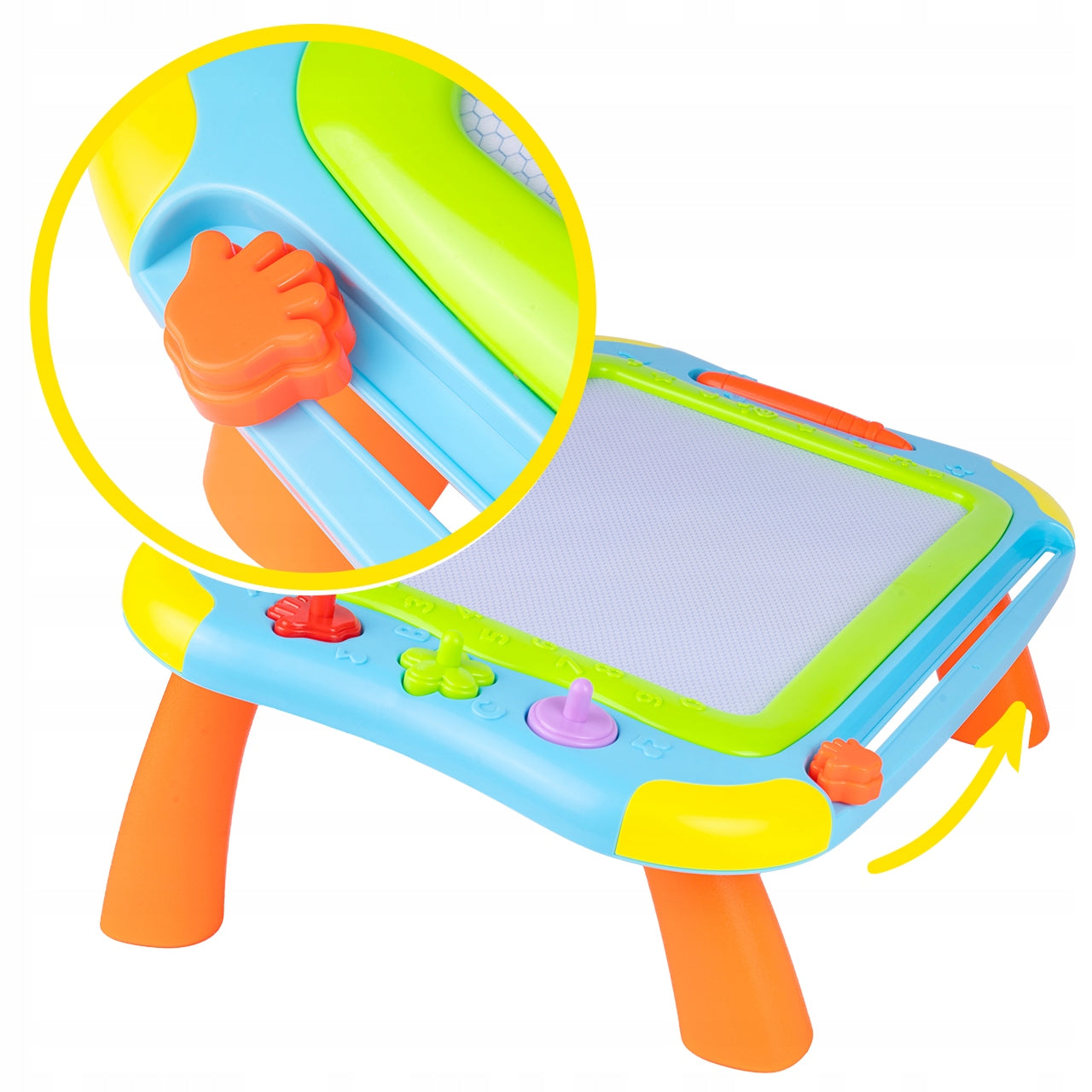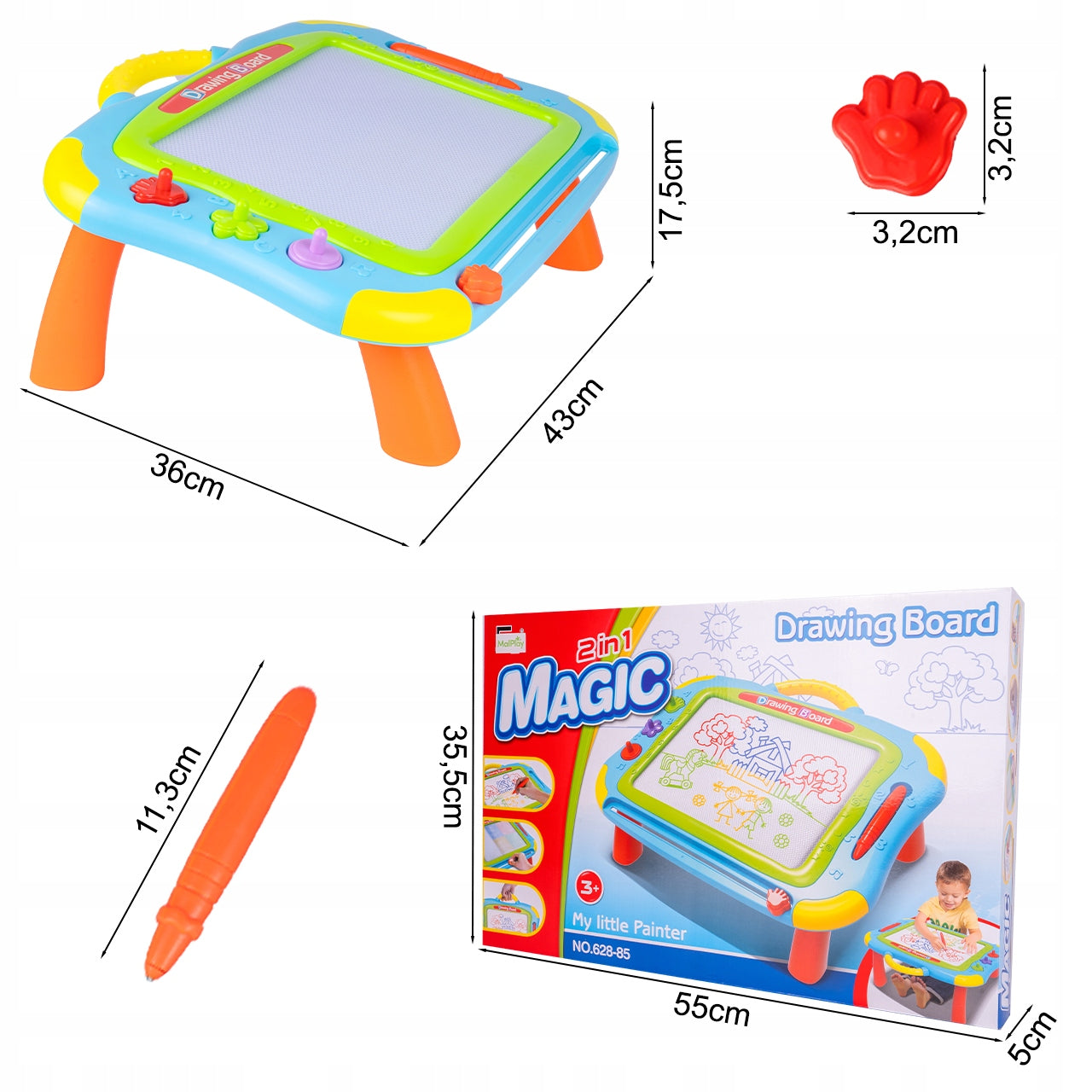 Ši išskirtinė piešimo lenta sukurta tam, kad paskatintų vaikų kūrybiškumą ir lavintų rankų įgūdžius. Vaikas galės valandų valandas piešti, kurti įvairius paveikslėlius, o vėliau juos lengvai ištrinti, taip suteikiant galimybę neribotai žaisti. Tai idealus įrankis lavinti vaizduotę, ugdyti koncentraciją ir rankos-akies koordinaciją. Spalvotas piešimo paviršius suskirstytas į kelias dalis, kiekviena jų turi savo spalvą (raudoną, mėlyną, žalią, geltoną). Kai vaikas piešia vienoje zonoje, piešinys automatiškai įgauna tai zonai priskirtą spalvą, suteikdamas piešiniams gyvumo.