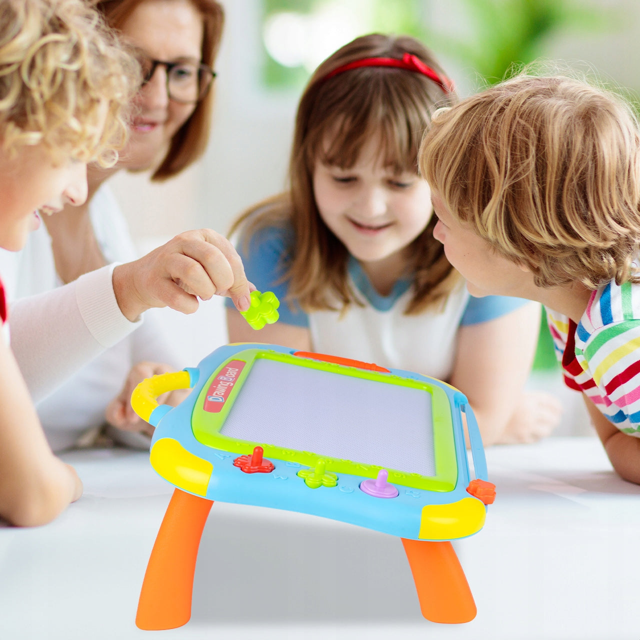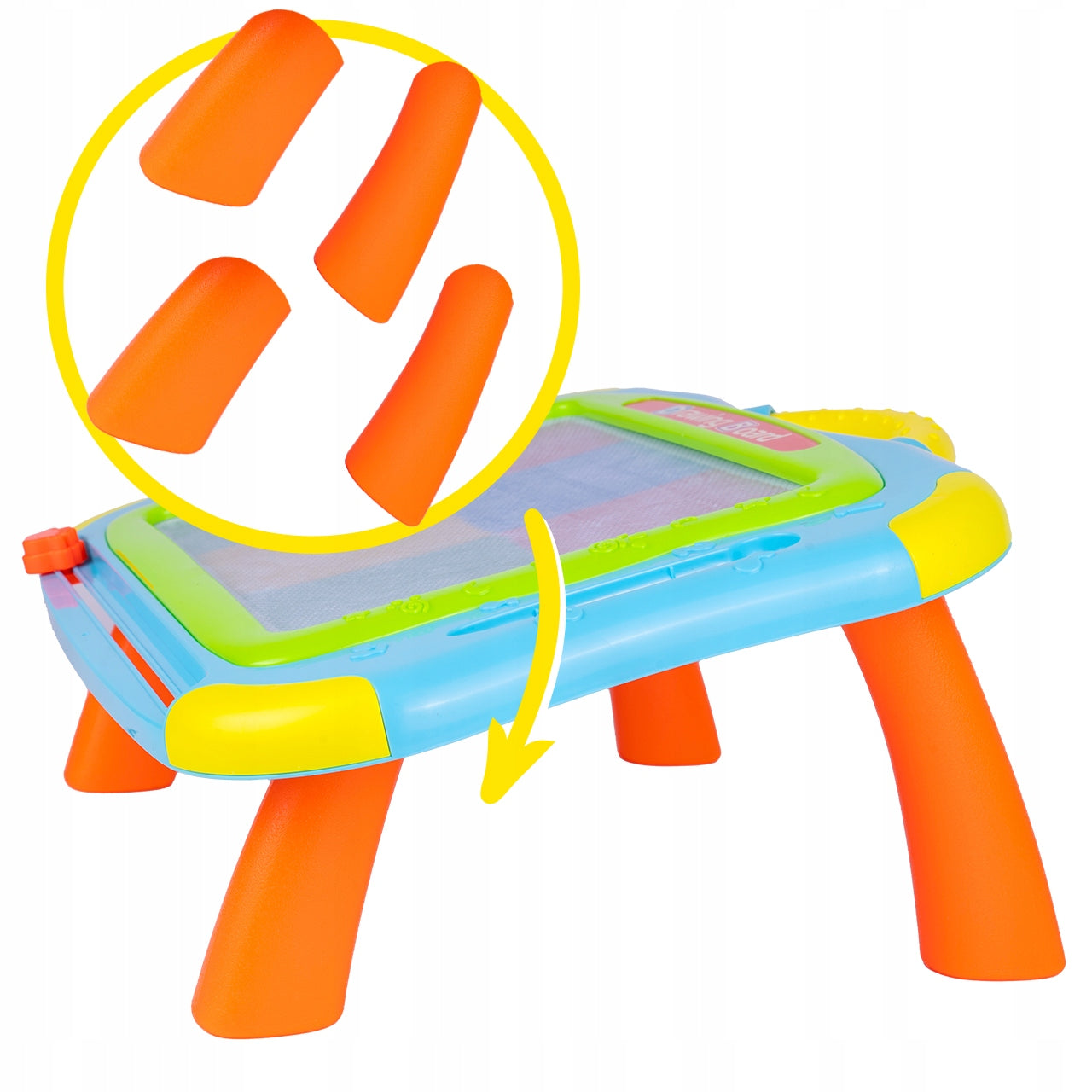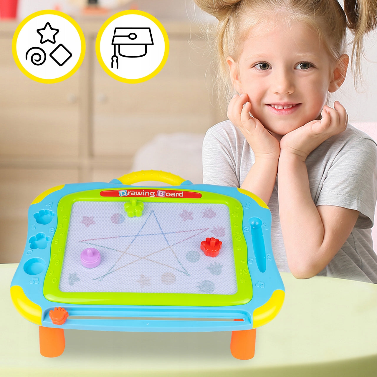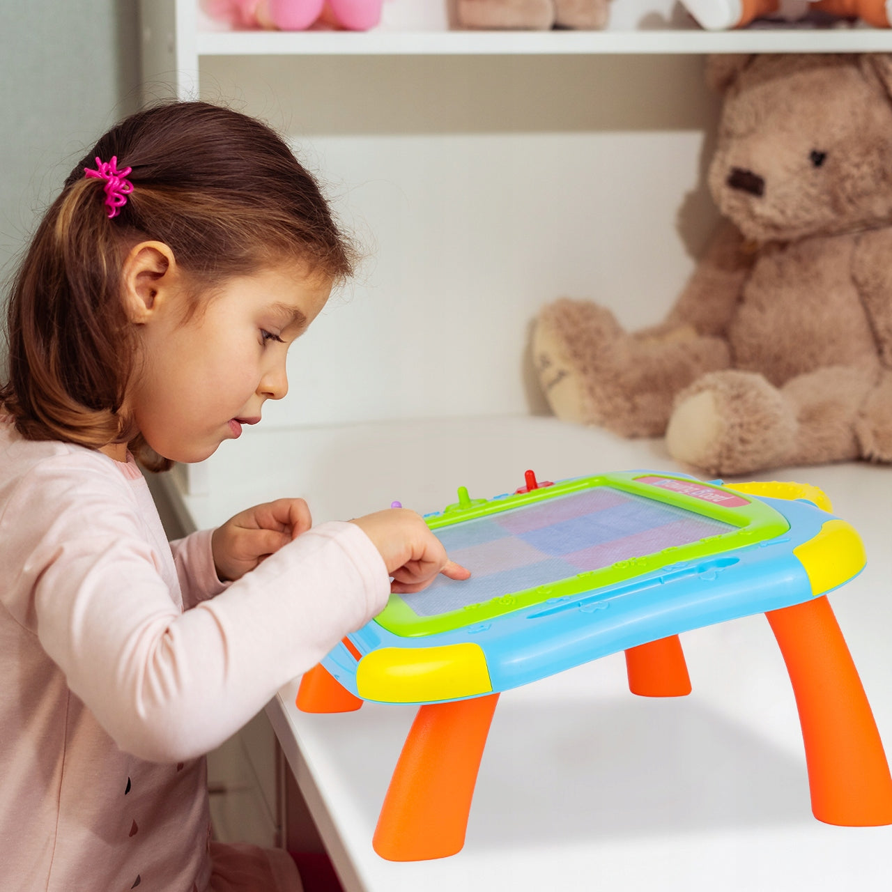 Ši išskirtinė piešimo lenta sukurta tam, kad paskatintų vaikų kūrybiškumą ir lavintų rankų įgūdžius. Vaikas galės valandų valandas piešti, kurti įvairius paveikslėlius, o vėliau juos lengvai ištrinti, taip suteikiant galimybę neribotai žaisti. Tai idealus įrankis lavinti vaizduotę, ugdyti koncentraciją ir rankos-akies koordinaciją. Spalvotas piešimo paviršius suskirstytas į kelias dalis, kiekviena jų turi savo spalvą (raudoną, mėlyną, žalią, geltoną). Kai vaikas piešia vienoje zonoje, piešinys automatiškai įgauna tai zonai priskirtą spalvą, suteikdamas piešiniams gyvumo.
