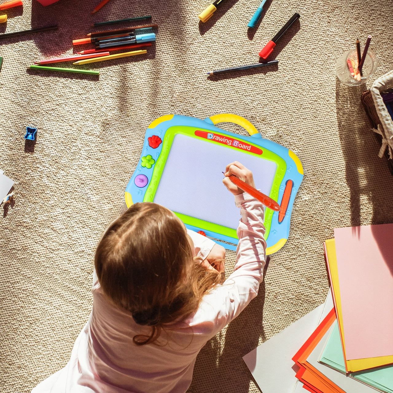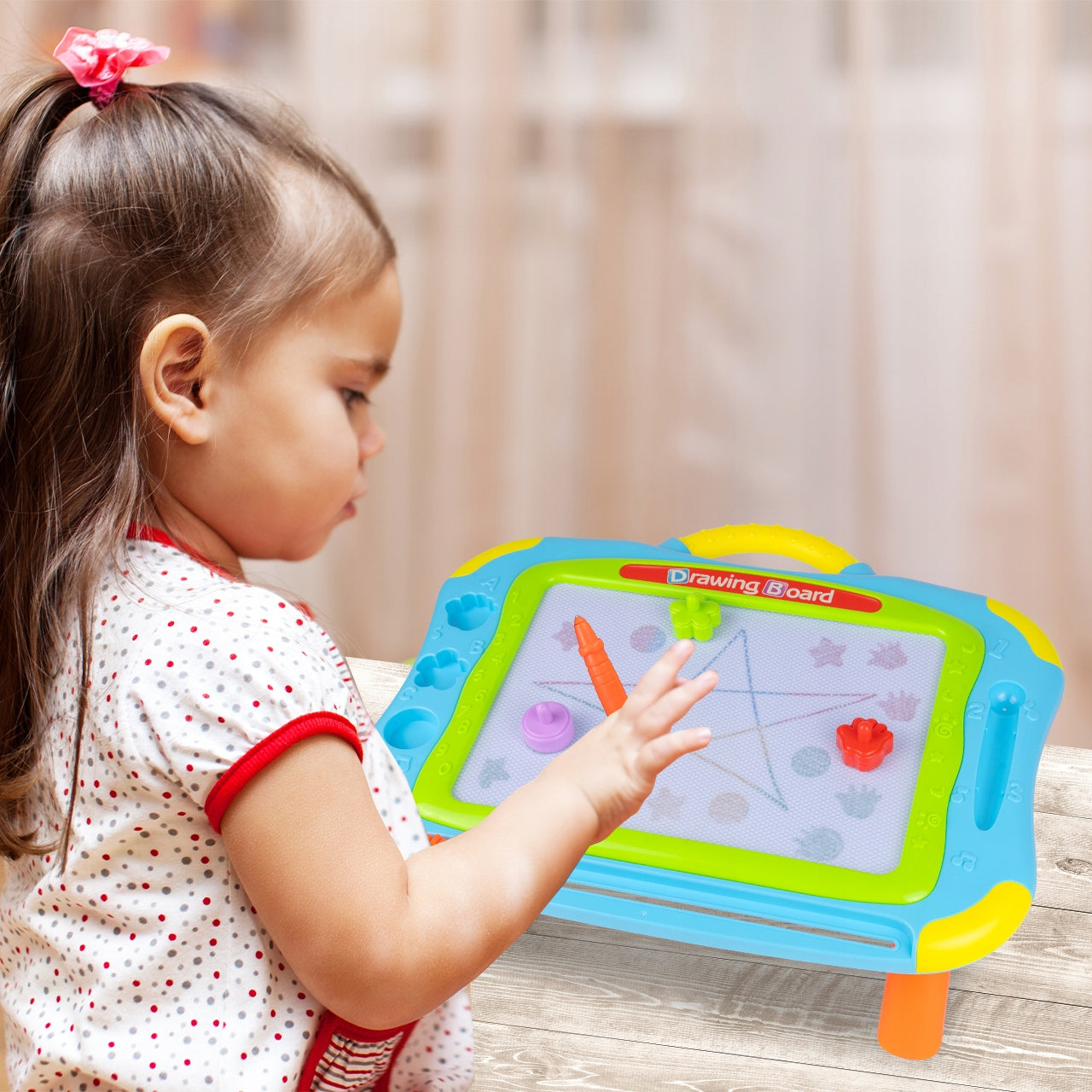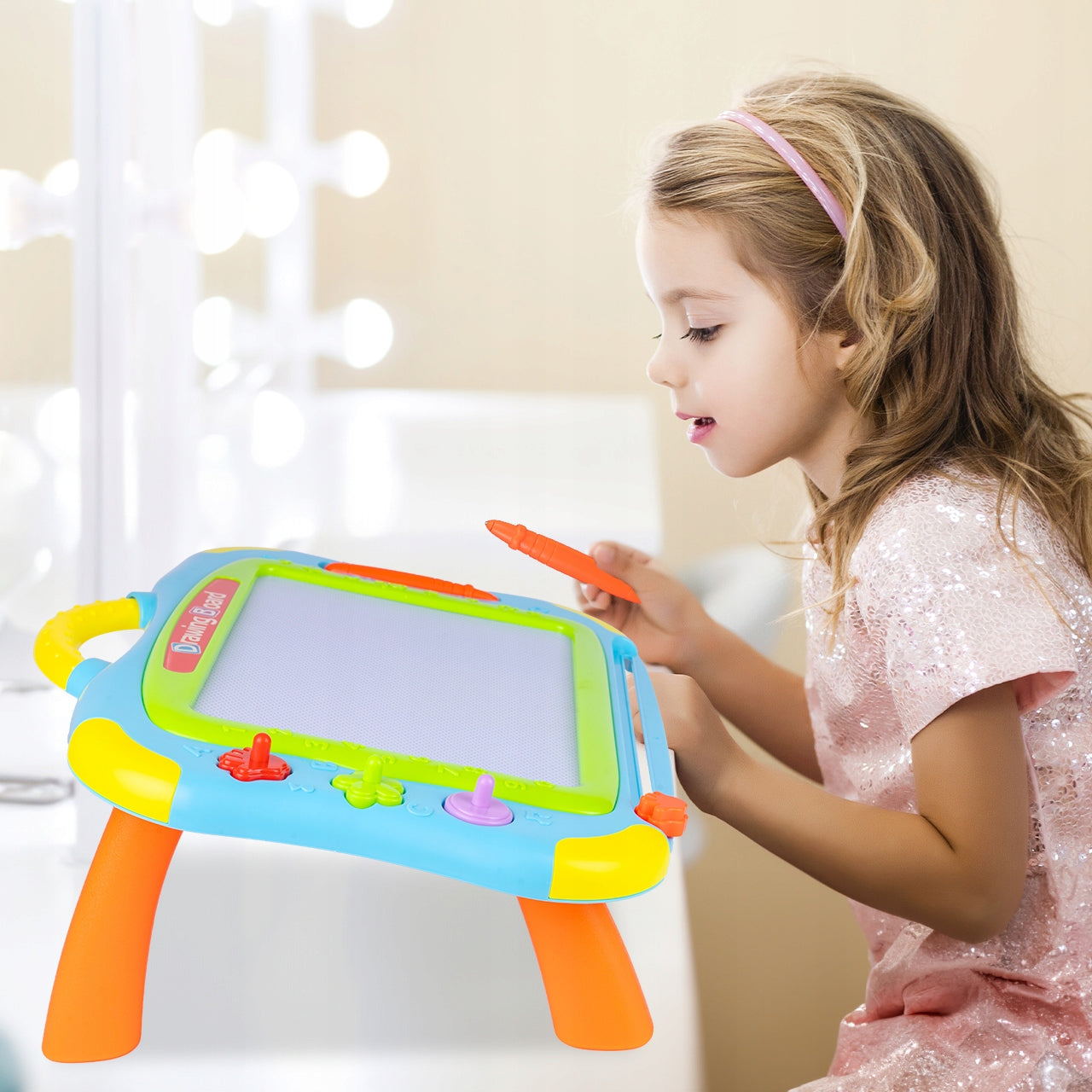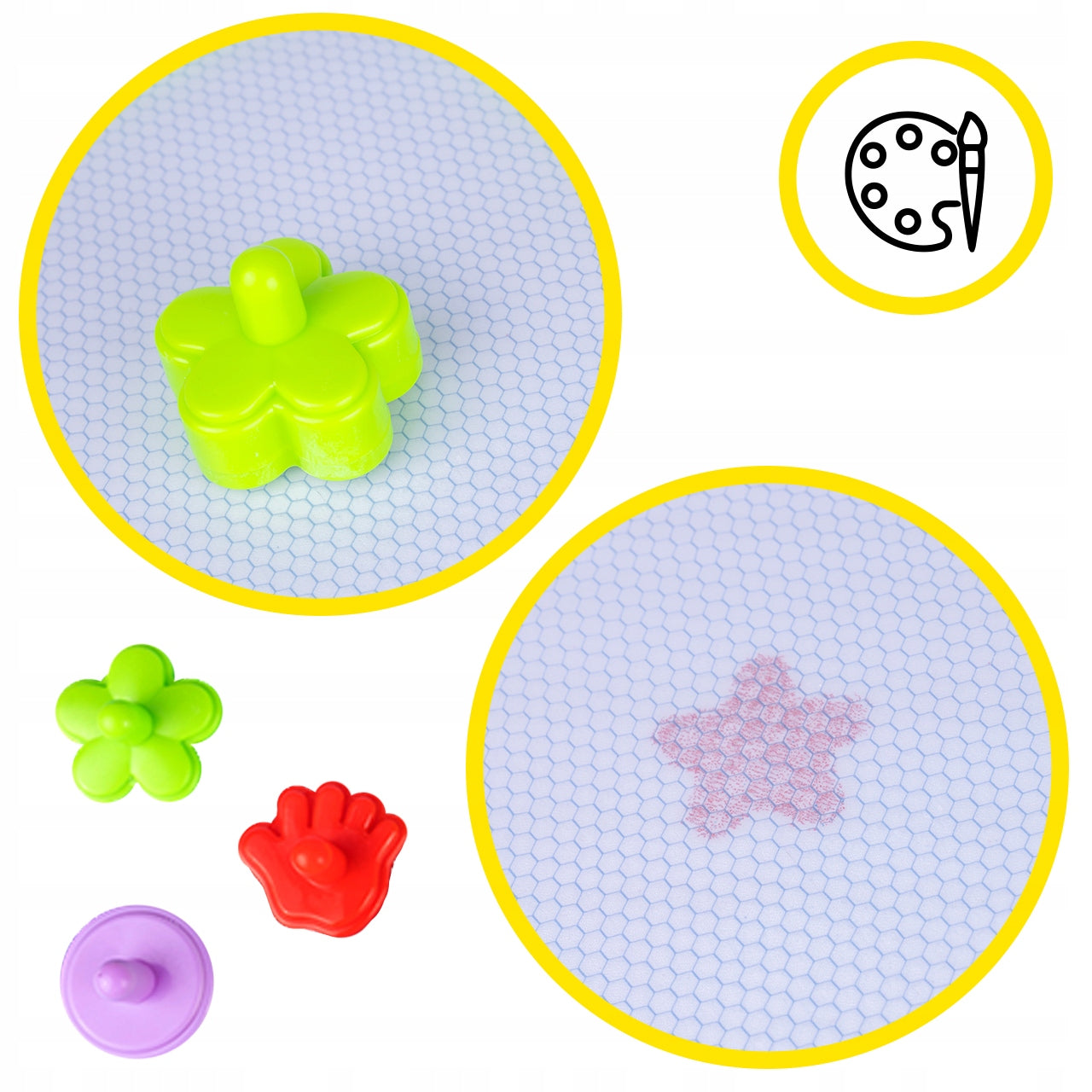 Ši išskirtinė piešimo lenta sukurta tam, kad paskatintų vaikų kūrybiškumą ir lavintų rankų įgūdžius. Vaikas galės valandų valandas piešti, kurti įvairius paveikslėlius, o vėliau juos lengvai ištrinti, taip suteikiant galimybę neribotai žaisti. Tai idealus įrankis lavinti vaizduotę, ugdyti koncentraciją ir rankos-akies koordinaciją. Spalvotas piešimo paviršius suskirstytas į kelias dalis, kiekviena jų turi savo spalvą (raudoną, mėlyną, žalią, geltoną). Kai vaikas piešia vienoje zonoje, piešinys automatiškai įgauna tai zonai priskirtą spalvą, suteikdamas piešiniams gyvumo.