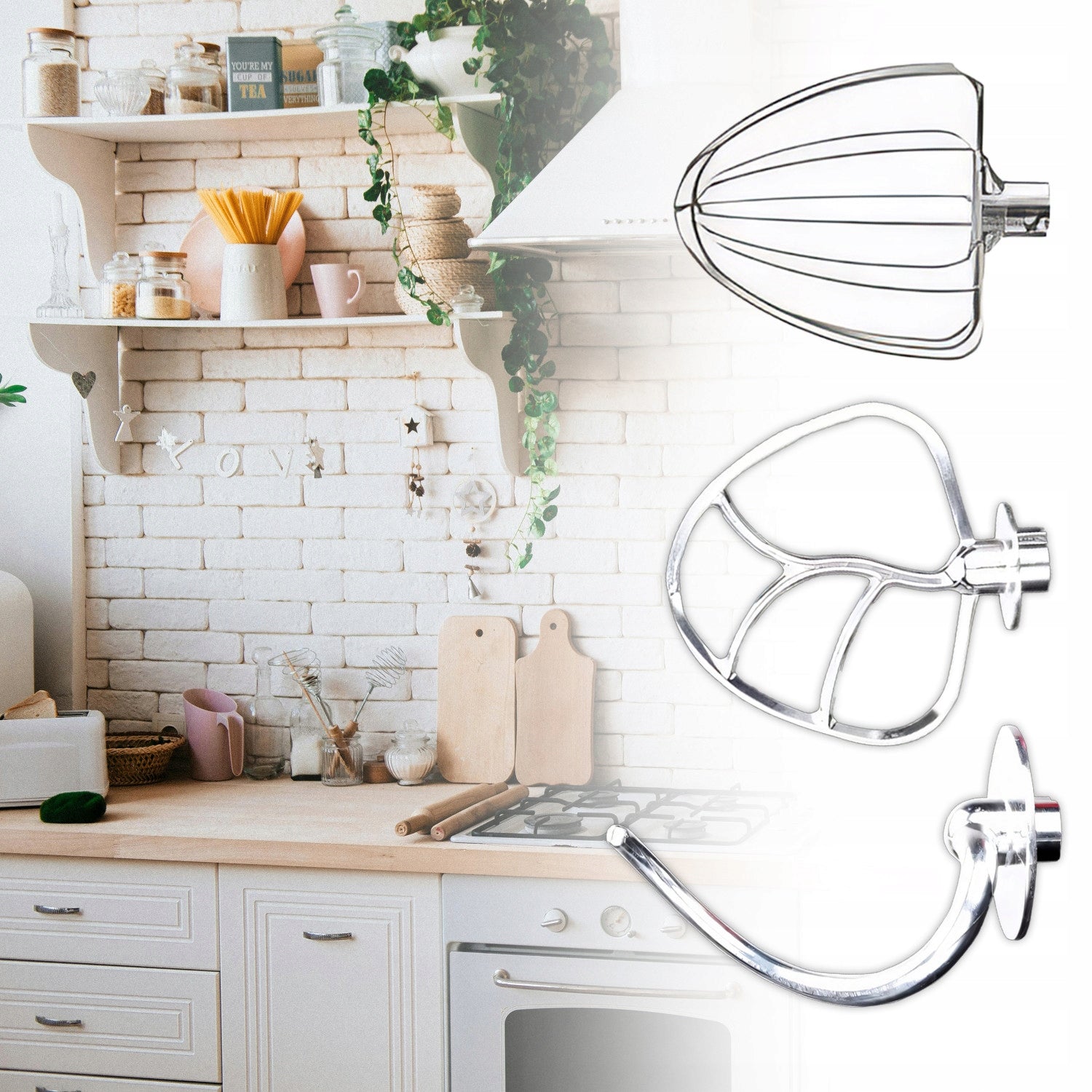 - 3 funkcionalūs antgaliai: Leidžia minkyti tešlą, plakti kremus ir maišyti įvairius produktus.