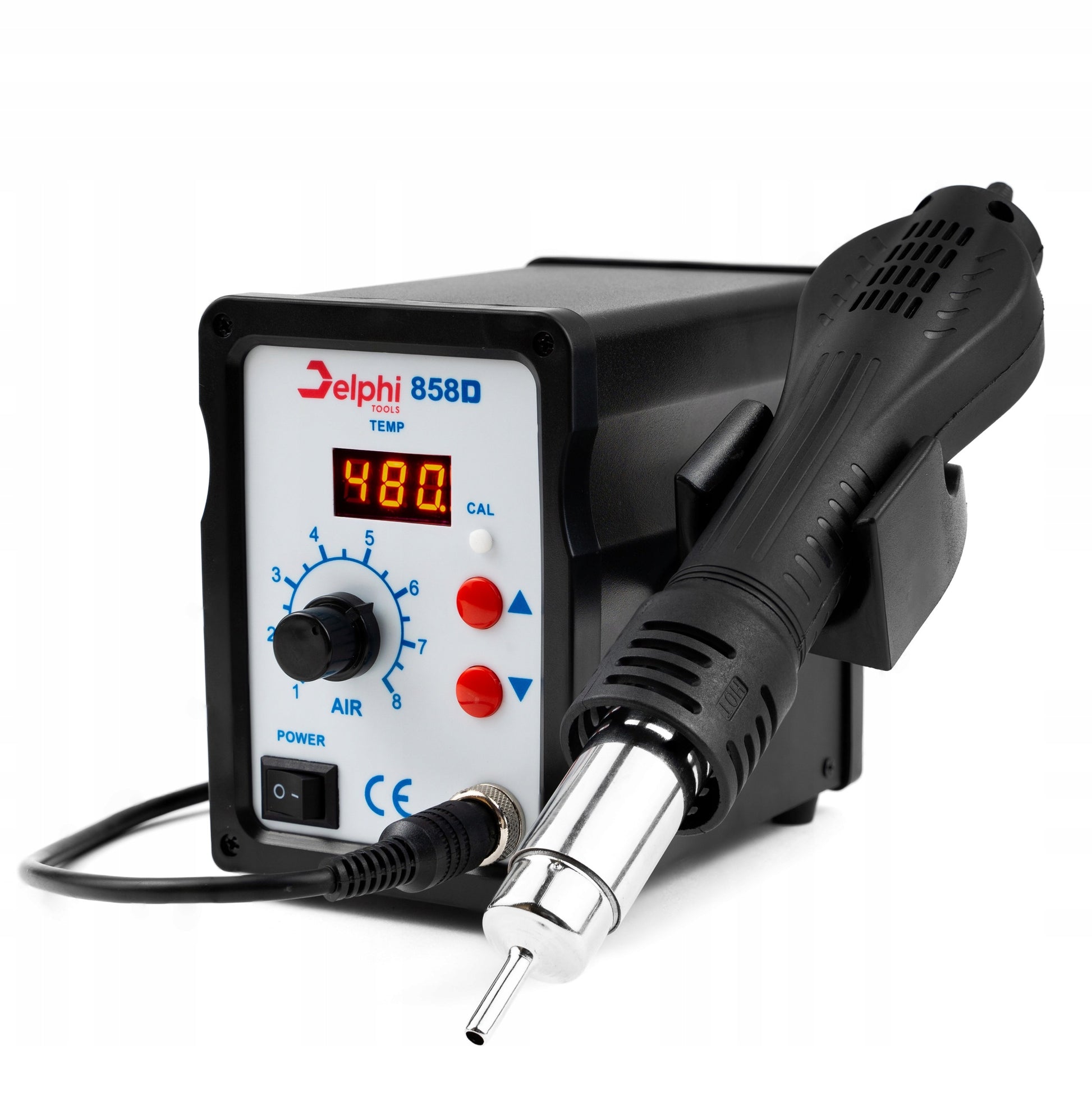 - Temperatūros diapazonas: 100–480 °C (karštas oras), iki 750 °C (lituoklis)