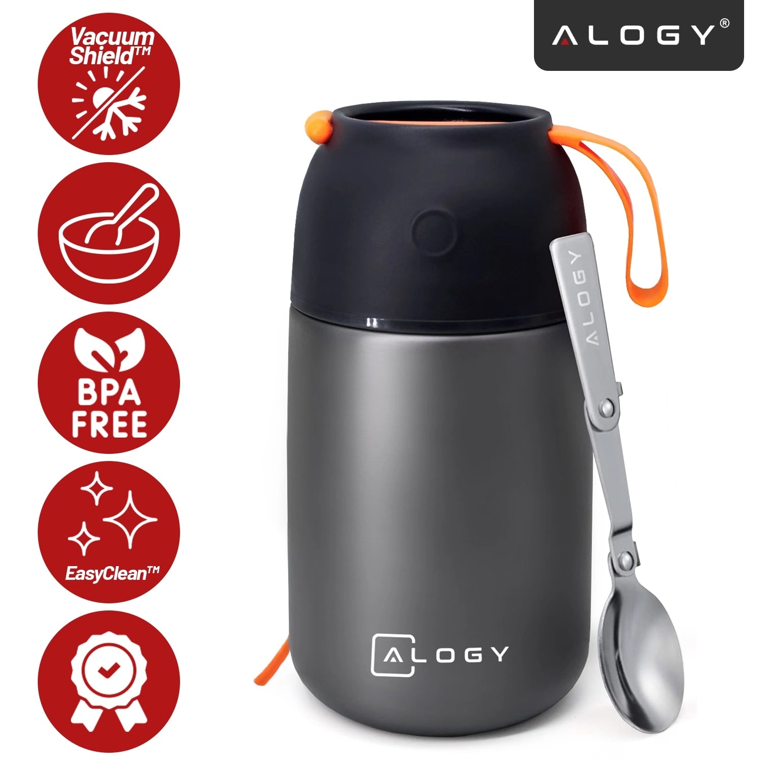 Atsisveikinkite su šaltu maistu kelionėse, darbe ar išvykose. Alogy Premium maisto termosas – tai jūsų patikimas kompanionas, užtikrinantis, kad jūsų patiekalai išliktų nepriekaištingos temperatūros valandų valandas. Su pažangia VacuumShield™ izoliacija, karšti patiekalai išlieka šilti net 12 valandų, o šalti – gaivūs iki 24 valandų. Platus EasyClean™ atidarymas ir aukščiausios kokybės SUS 304 nerūdijančio plieno konstrukcija garantuoja patogumą ir ilgaamžiškumą. Šis termosas sukurtas jūsų patogumui, siūlydamas ne tik funkcionalumą, bet ir stilių.