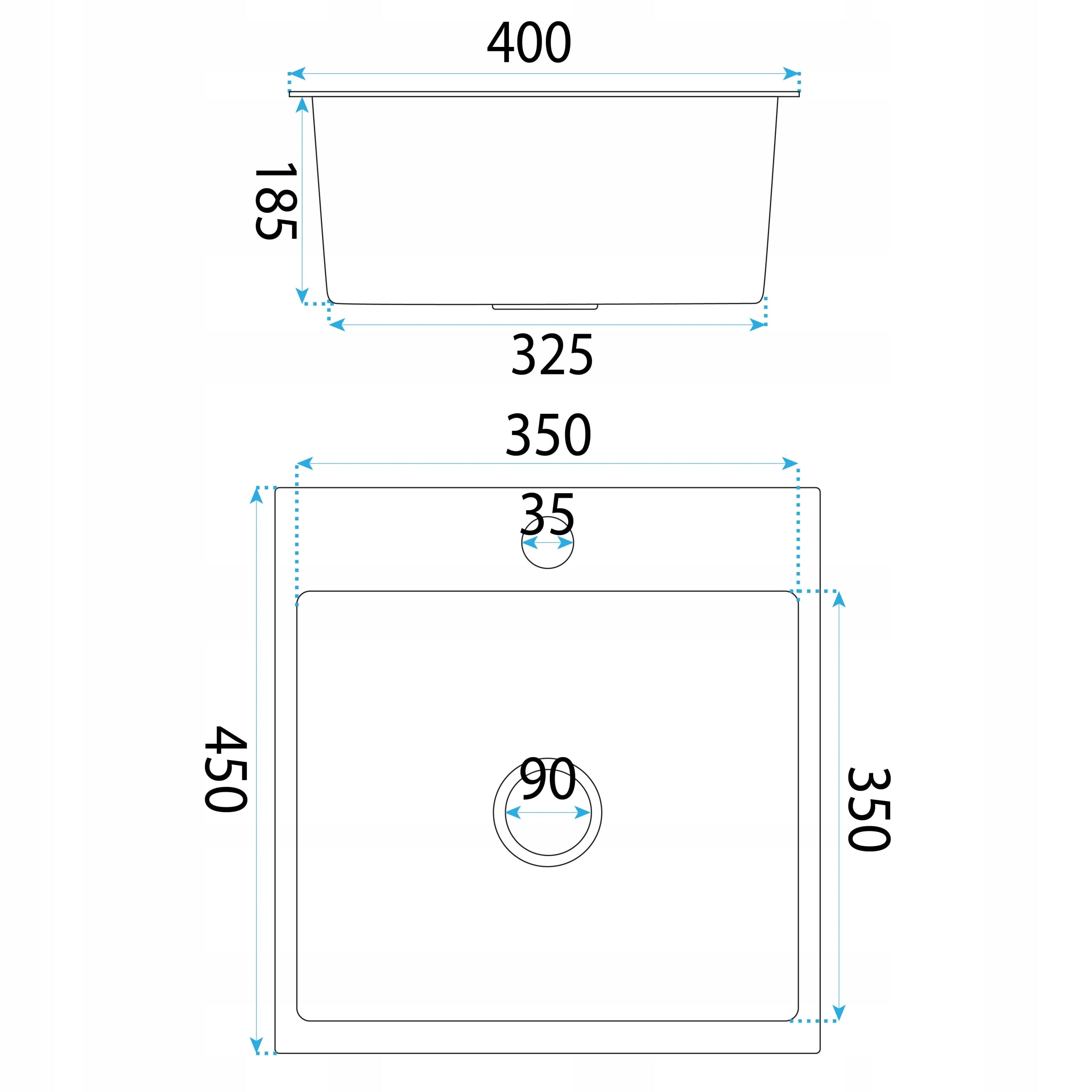 - Matmenys: Kriauklės išorinis plotis yra 40 cm, o ilgis – 45 cm. Būtina įsitikinti, kad virtuvės stalviršyje pakanka vietos jos tinkamam įmontavimui.
