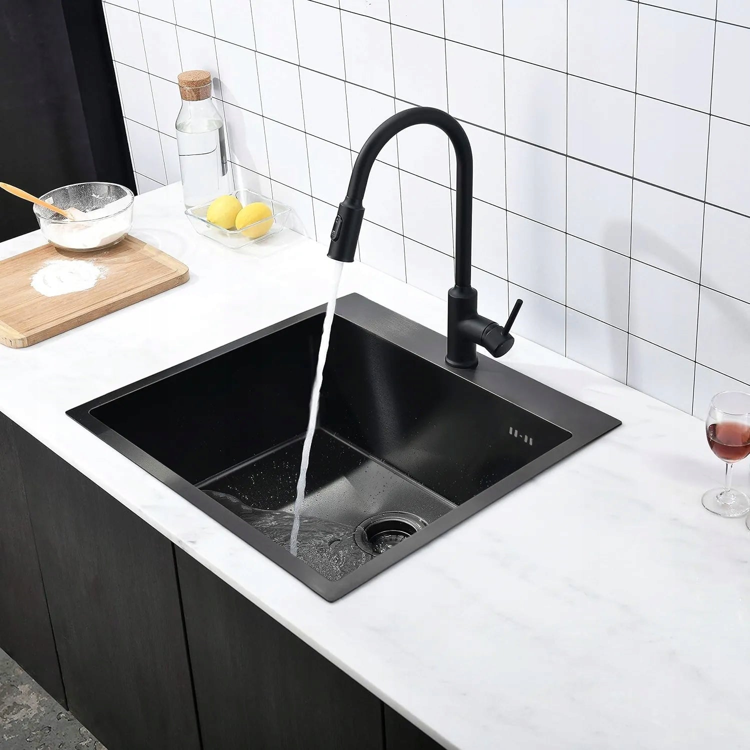 - Juodos spalvos priežiūra: Nors nerūdijančio plieno juoda danga yra patvari, intensyviai naudojant ir paliekant vandens lašų išdžiūti, ant jos gali atsirasti kalkių dėmių. Rekomenduojama paviršių reguliariai valyti ir nusausinti.