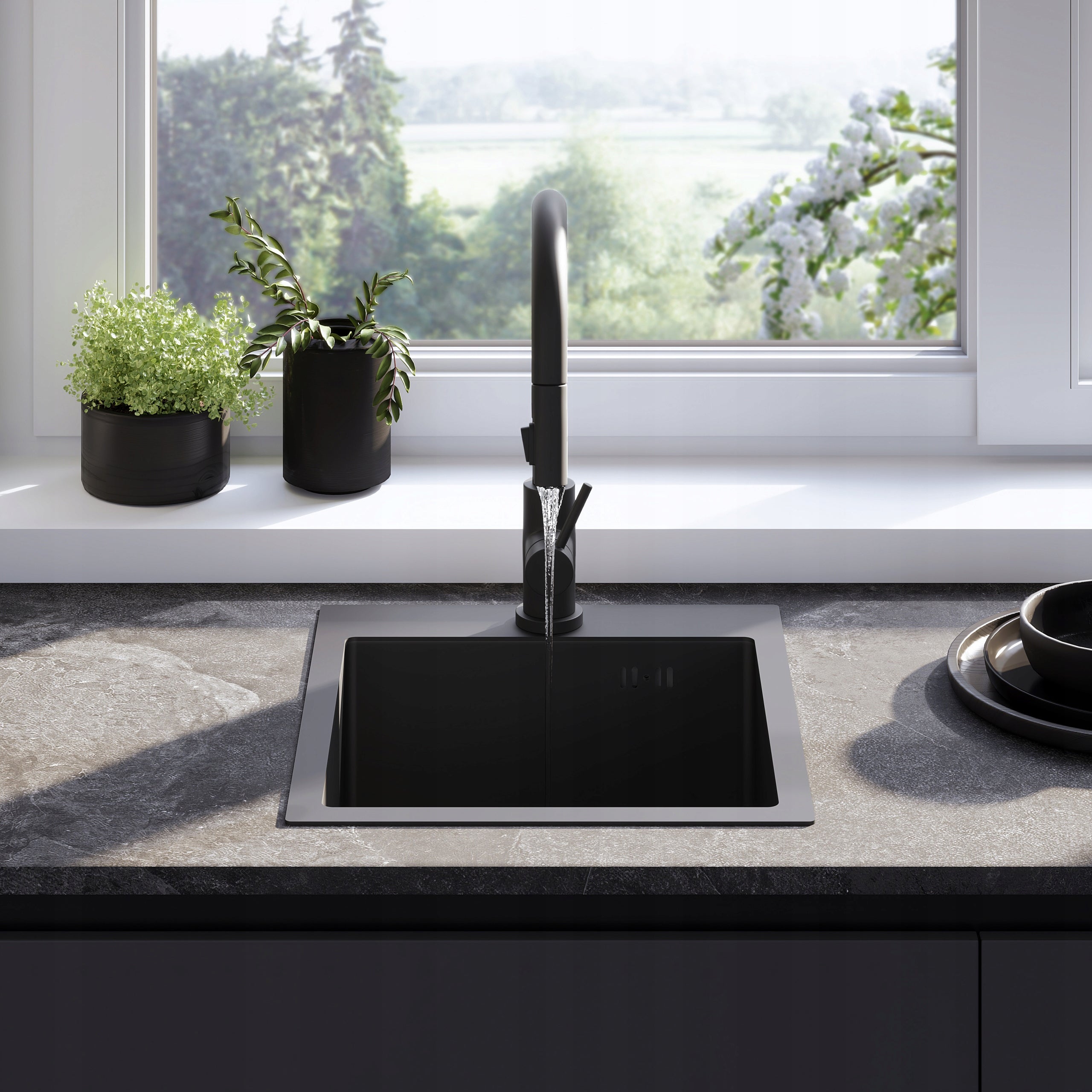 Elegantiška ir funkcionali juoda virtuvės kriauklė REA LEO 40 cm