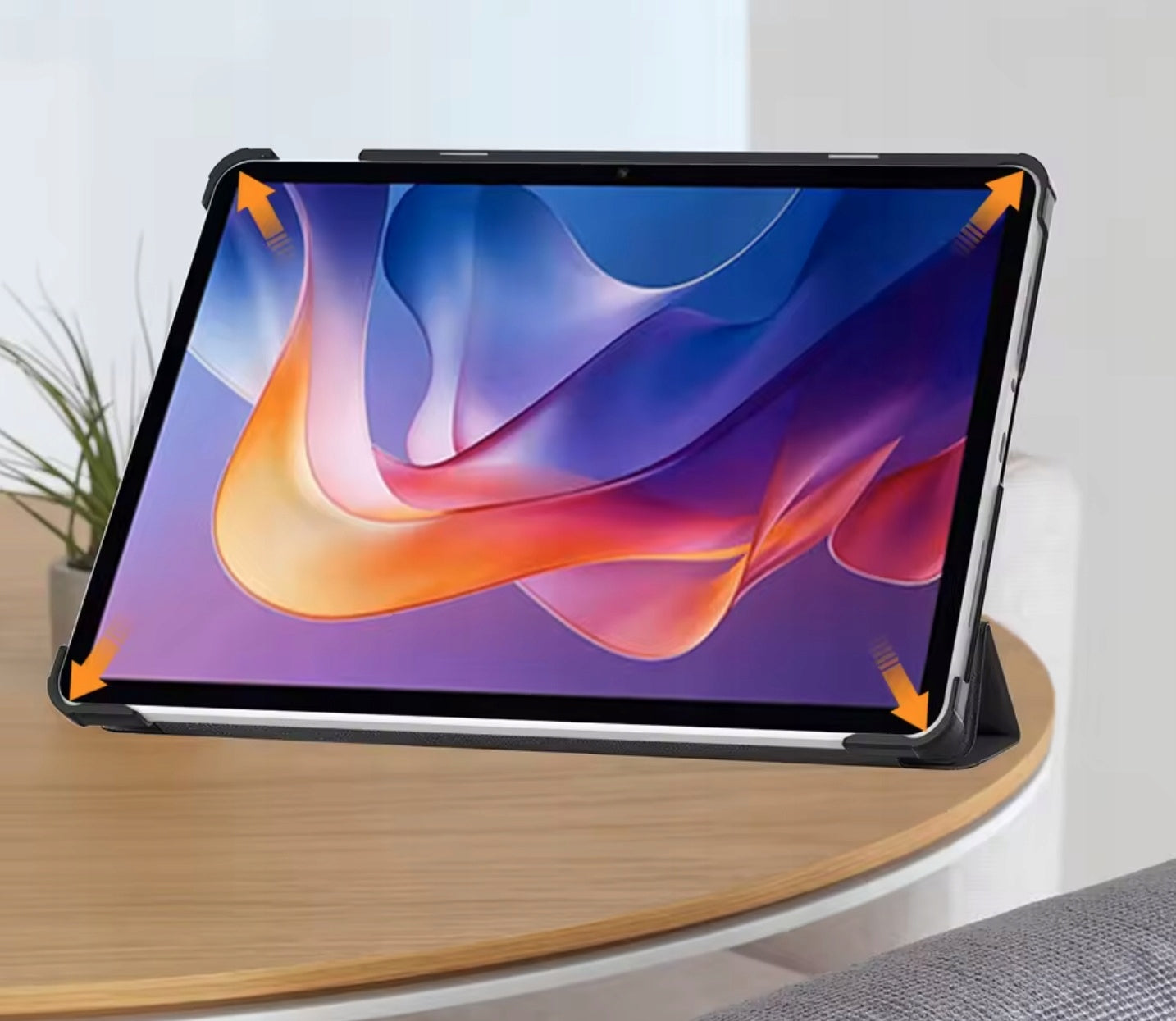 Viena iš svarbiausių šio dėklo savybių – integruota stovėjimo funkcija. Dėl specialios konstrukcijos, dėklą galima lengvai sulankstyti į patogų stovą, tinkantį įvairiems kampams – 15° ir 60°. Ši funkcija ypač pravers žiūrint filmus, naršant internete, skaitant ar dirbant su planšete. Galėsite patogiai pastatyti įrenginį ant stalo ar bet kokio kito paviršiaus, atlaisvindami rankas ir mėgaudamiesi patogesne patirtimi. Dėklas suteikia 360° apsaugą – nuo ekrano iki nugarėlės ir šoninių briaunų, užtikrindamas visapusišką jūsų planšetės saugumą.