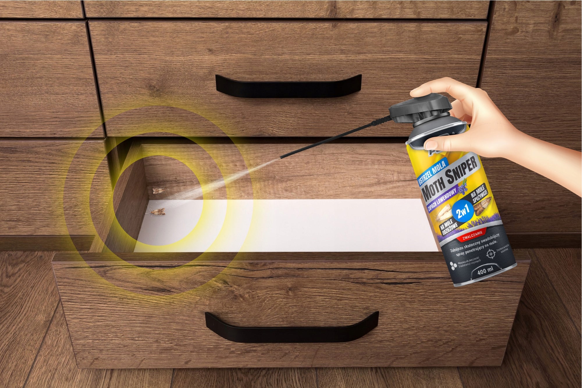 Šis universalus aerozolis idealiai tinka naudoti įvairiose namų vietose, kur dažniausiai apsigyvena moliai: