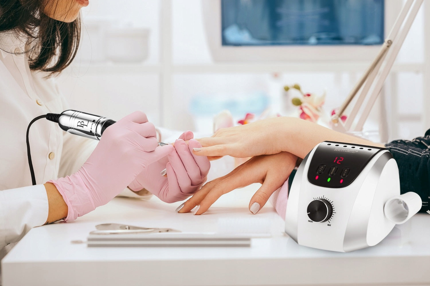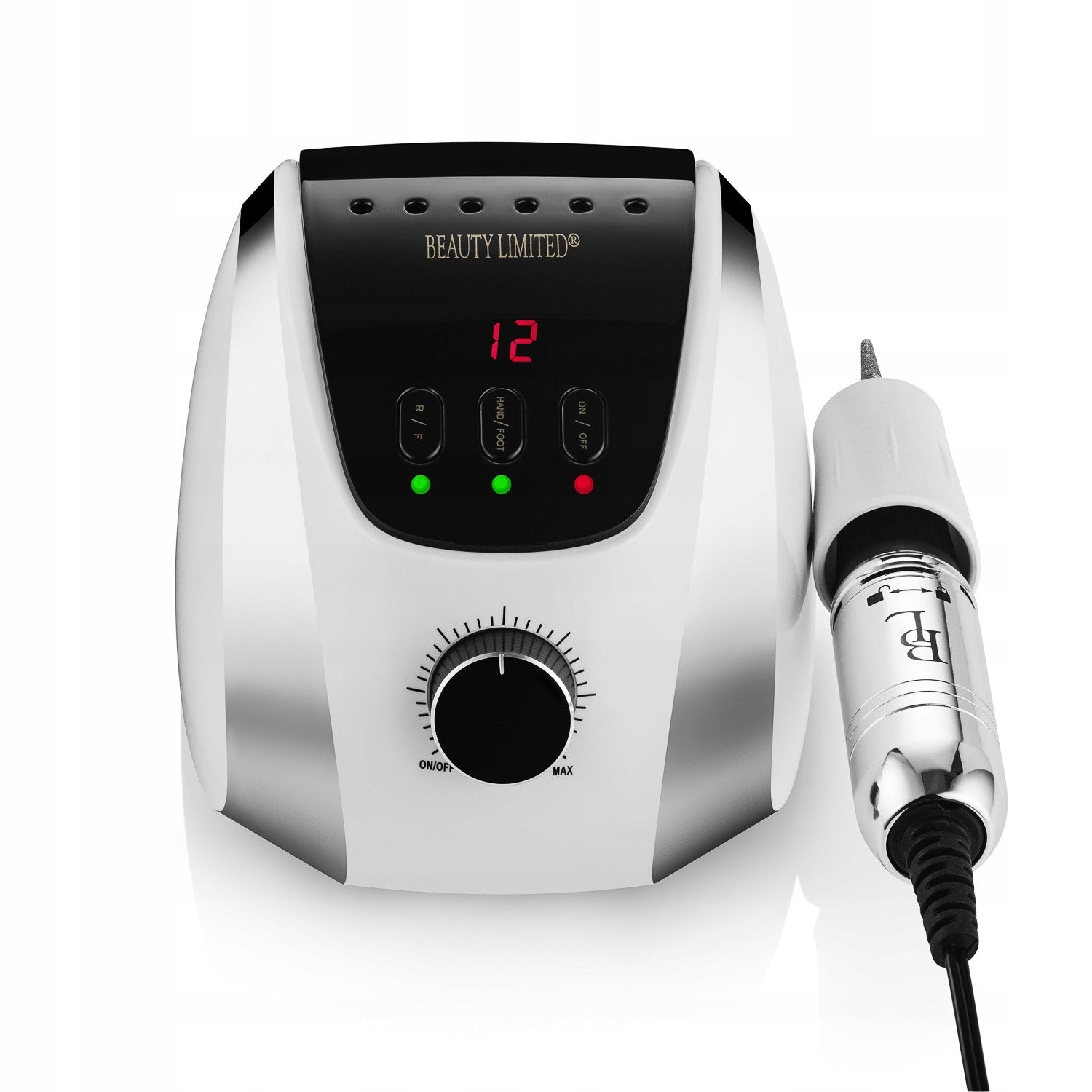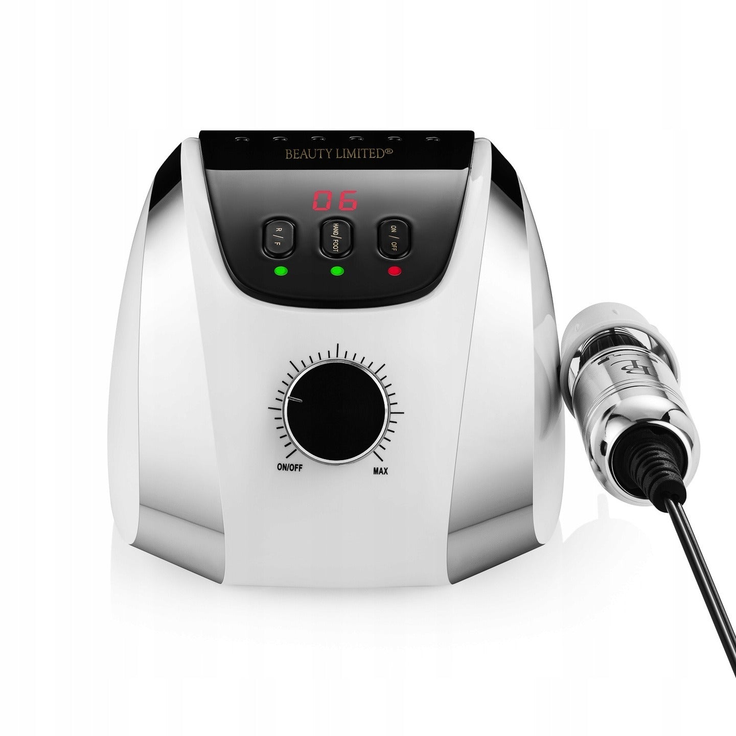 Profesionali nagų freza manikiūrui ir pedikiūrui 65W Beauty Limited Drilly White – su LCD ekranu, Twist-Off, 35000 aps./min.