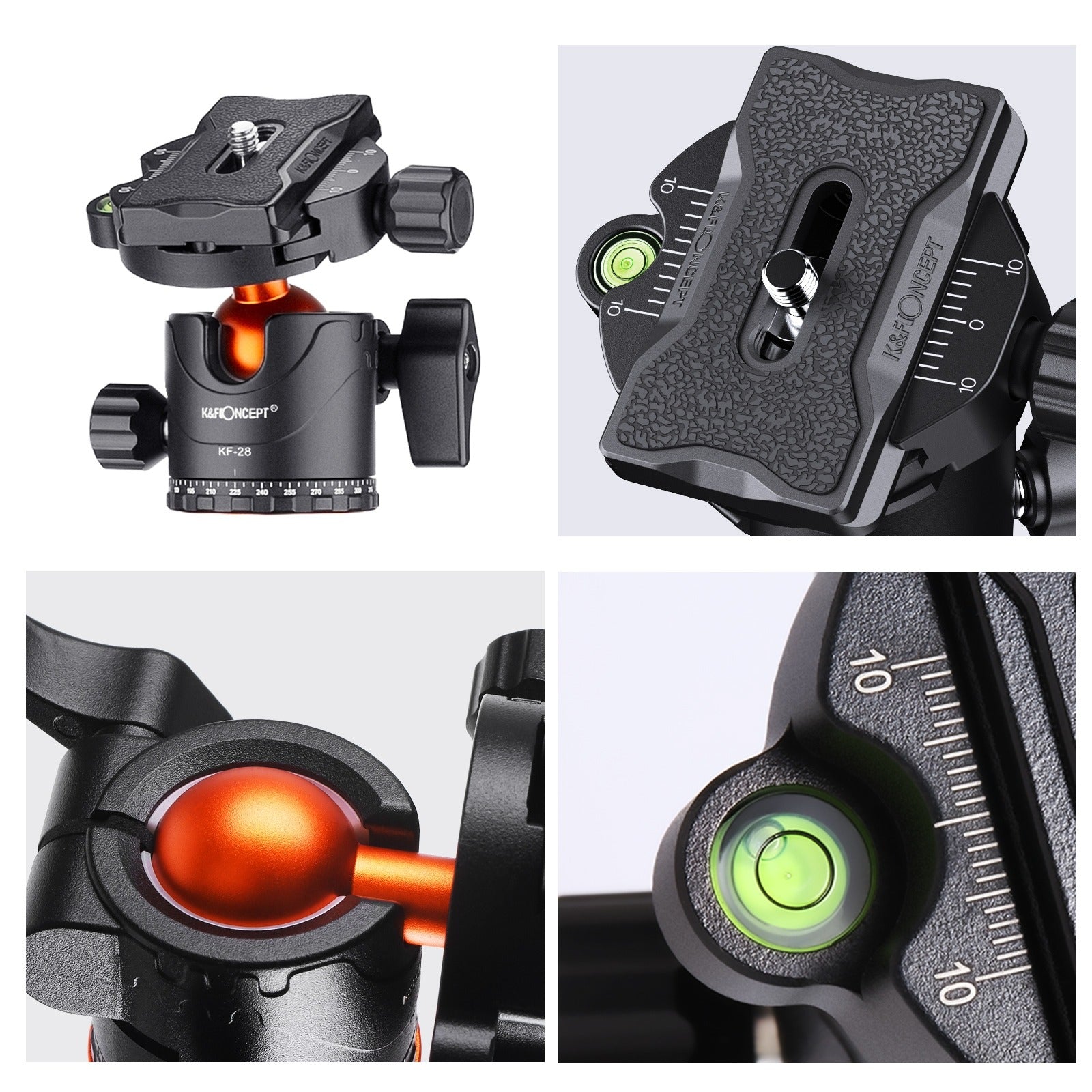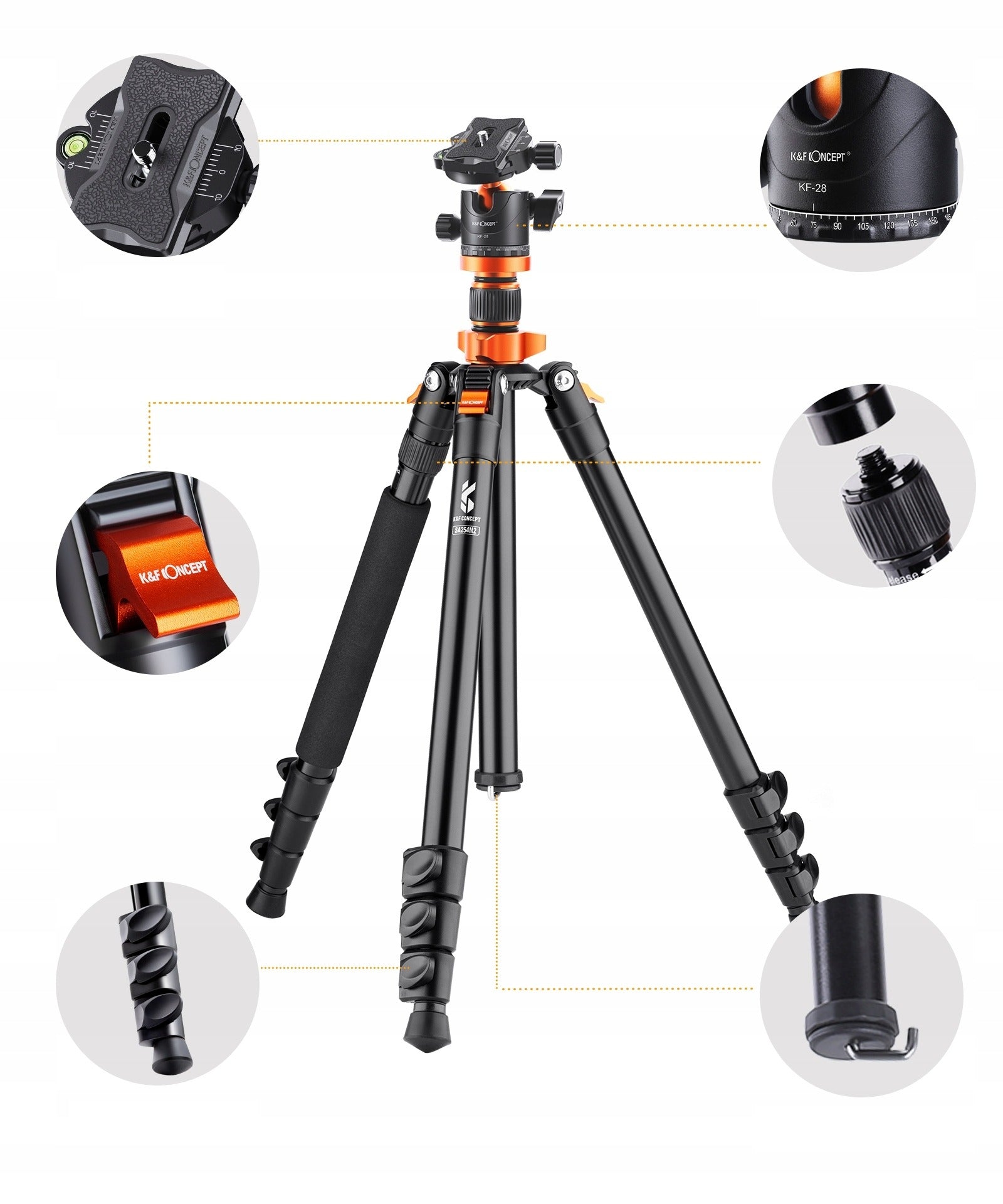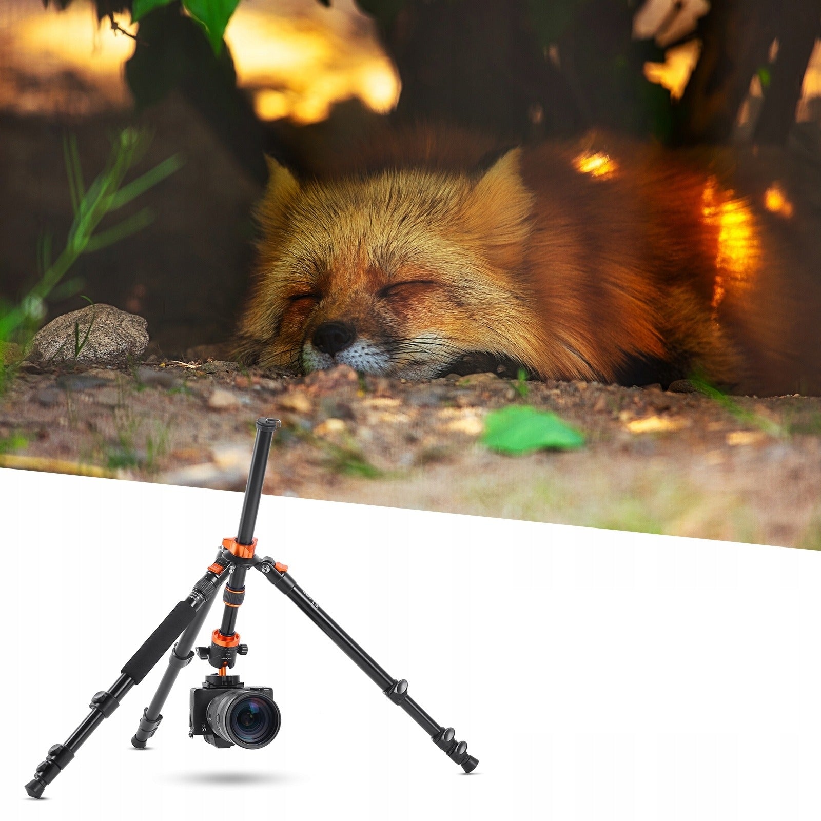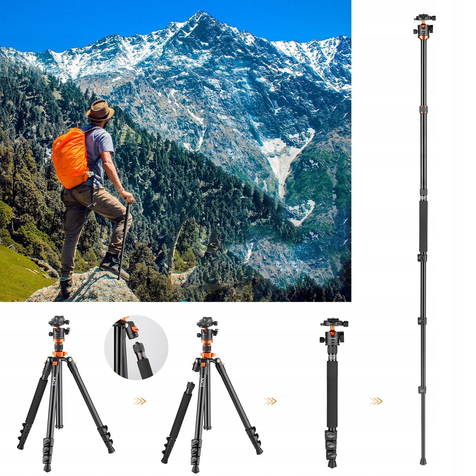 Profesionalus aliuminio trikojis su monopodu K&F Concept K254A3 175 cm – lengvas, tvirtas, su 360° panoramine galva ir makro fotografijos funkcija