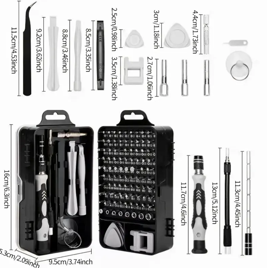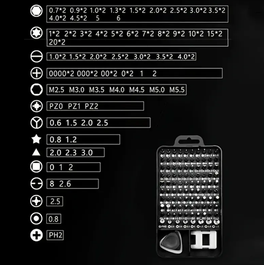 Siekdami užtikrinti aukštą darbo efektyvumą ir patikimumą, pristatome mūsų naująją atsuktuvų rinkinį, kuris ne tik pasižymi išskirtine kokybe, bet ir siūlo platų galimybių spektrą kiekvienai situacijai gyvenime. Šis rinkinys, sudarytas iš 115 dalių ir antgalių, taps jūsų universaliu įrankiu visose namų remonto, statybos ar techninėse srityse.