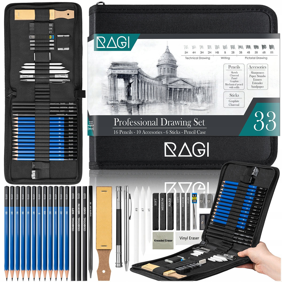 Profesionalus Piešimo ir Eskizavimo Pieštukų Rinkinys 33in1