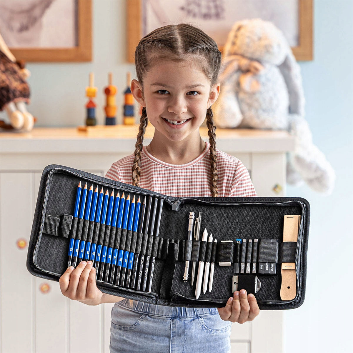 Aukštos kokybės profesionalus piešimo ir eskizavimo rinkinys, skirtas įvairioms piešimo technikoms. Puikus pasirinkimas tiek pradedantiesiems, tiek profesionalams, norintiems tobulinti įgūdžius ir eksperimentuoti su įvairiais kūrybiniais sprendimais.