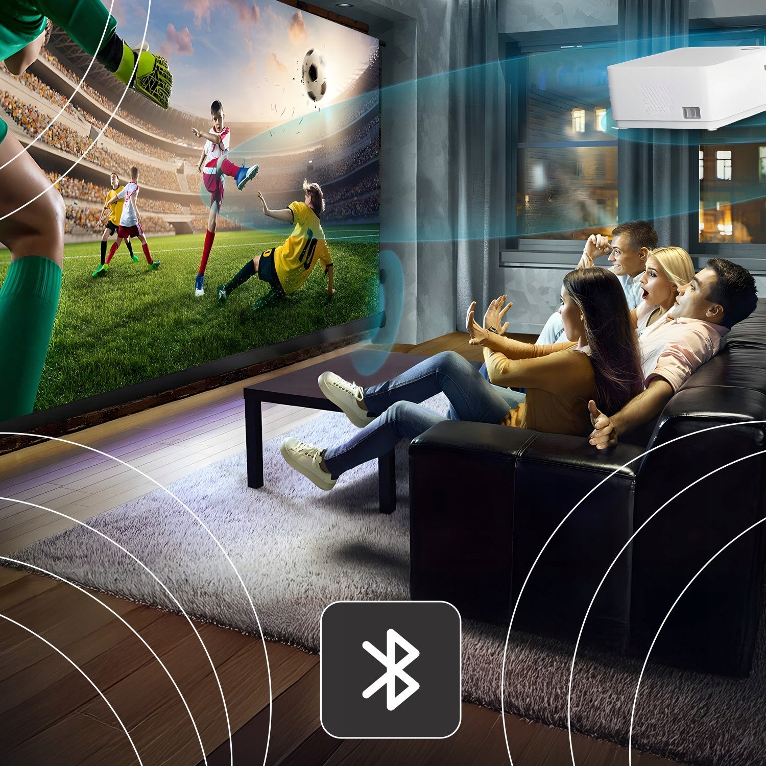 Šis projektorius veikia su „Android“ operacine sistema, kuri suteikia prieigą prie daugybės programėlių. Mėgaukitės mėgstamais filmais per „Netflix“, „YouTube“, „Amazon Prime Video“ ar „Disney+“, klausykitės muzikos „Spotify“ platformoje ar naršykite internete su integruota „Chrome“ naršykle. „Wi-Fi 2.4/5 GHz“ ryšys užtikrina stabilų ir greitą prisijungimą prie interneto, todėl galite transliuoti turinį be trikdžių. Projektorius lengvai susisiekia su „Android“, „iOS“ (iPhone, iPad) ir „Windows“ įrenginiais, leidžiantis bevieliu būdu dalintis vaizdu ir garsu.