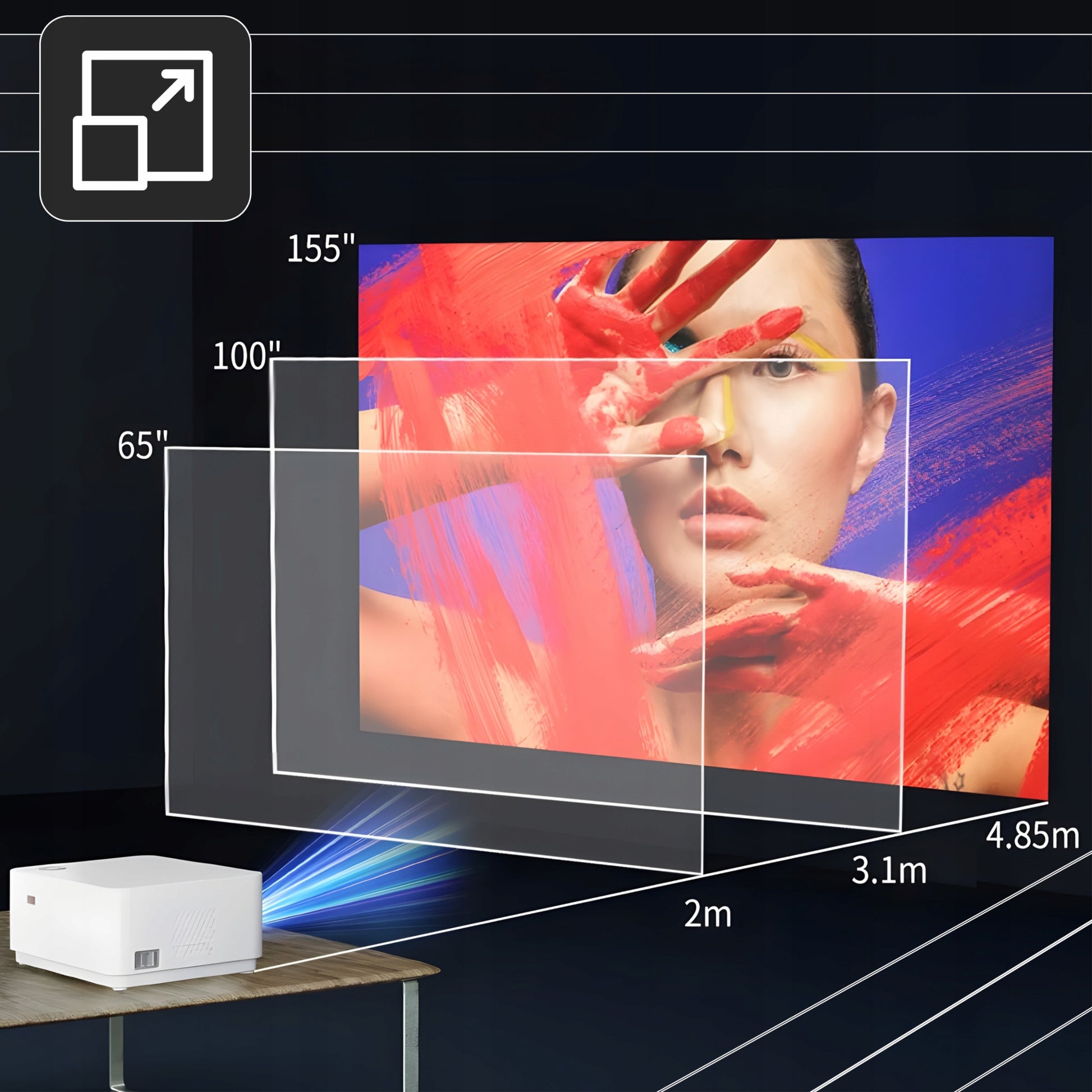 Nepaprastai universalus, šis projektorius tinka įvairioms reikmėms – nuo namų kino sistemų sukūrimo iki verslo pristatymų ar edukacinių paskaitų vedimo. Dėl galimybės vaizdo projekciją pritaikyti nuo 36 iki net 200 colių įstrižainės ir reguliuojamo projekcijos atstumo (1,2–6 m), jis lengvai integruojamas bet kokio dydžio patalpoje. Projektorius siūlo daugybę reguliavimo galimybių: „Keystone 4D“ funkcija leidžia koreguoti vaizdą vertikaliai ir horizontaliai iki +/- 15 laipsnių, yra skaitmeninė vaizdo kampo reguliavimo funkcija, rankinis fokusavimas ir vaizdo mastelio keitimo (zoom) funkcija. Be to, galite rinktis iš 23 kalbų, įskaitant lietuvių, anglų, lenkų ir kt., todėl jis tampa patogus tarptautiniams vartotojams. Triukšmo lygis siekia vos 30-35 dB, todėl projektorius veikia itin tyliai.