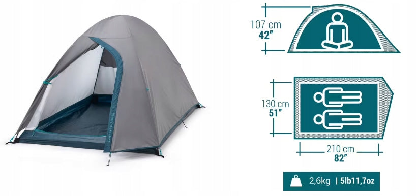 Quechua 2-žmonių turistinė palapinė sujungia paprastumą, funkcionalumą ir ilgaamžiškumą, todėl yra praktiškas pasirinkimas stovyklavimo entuziastams.
