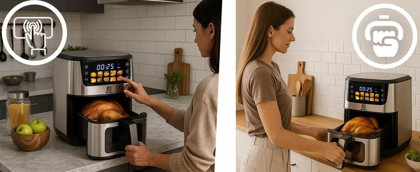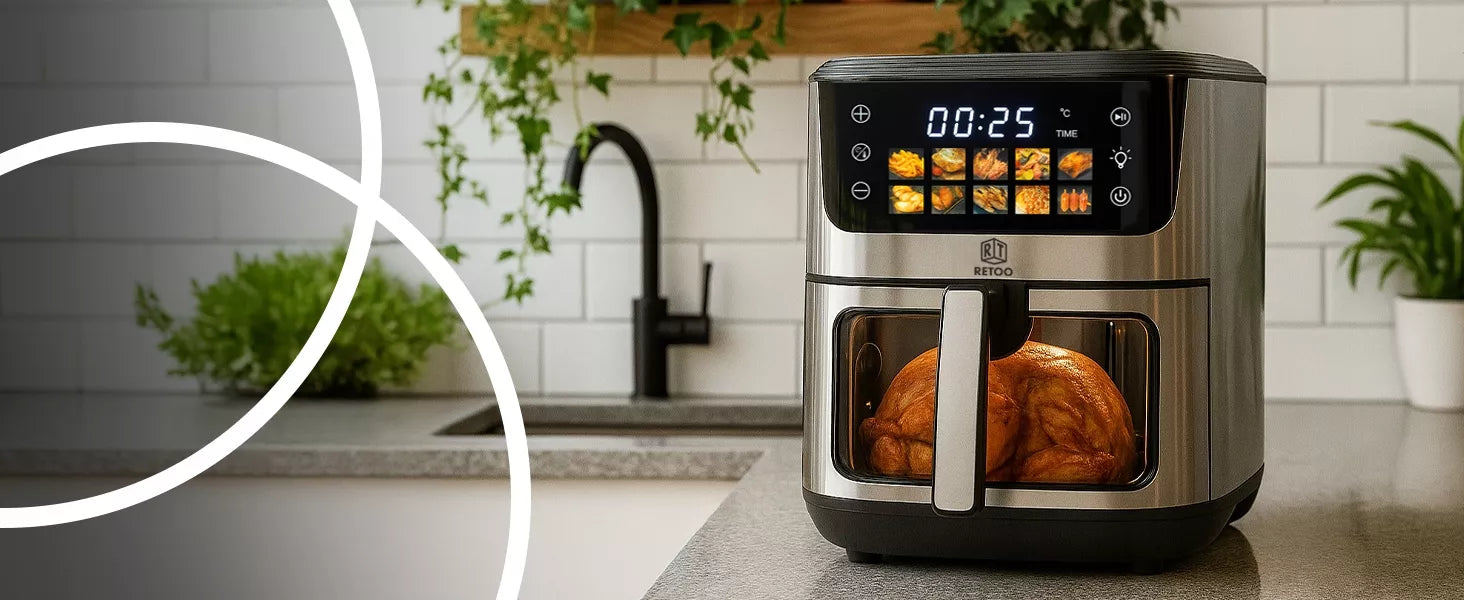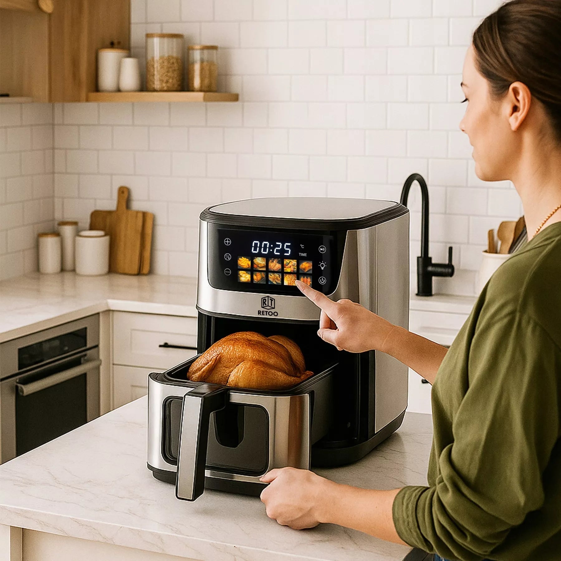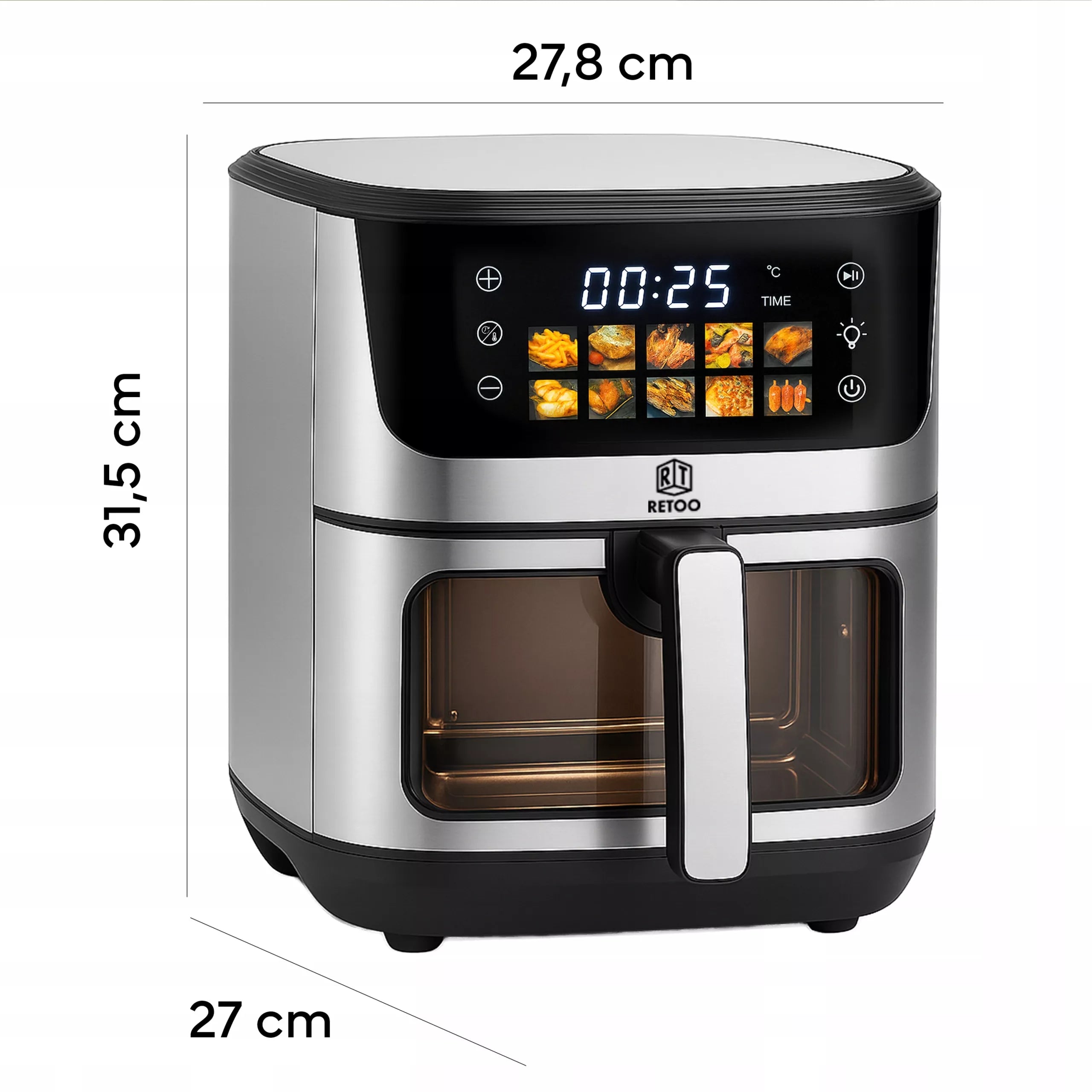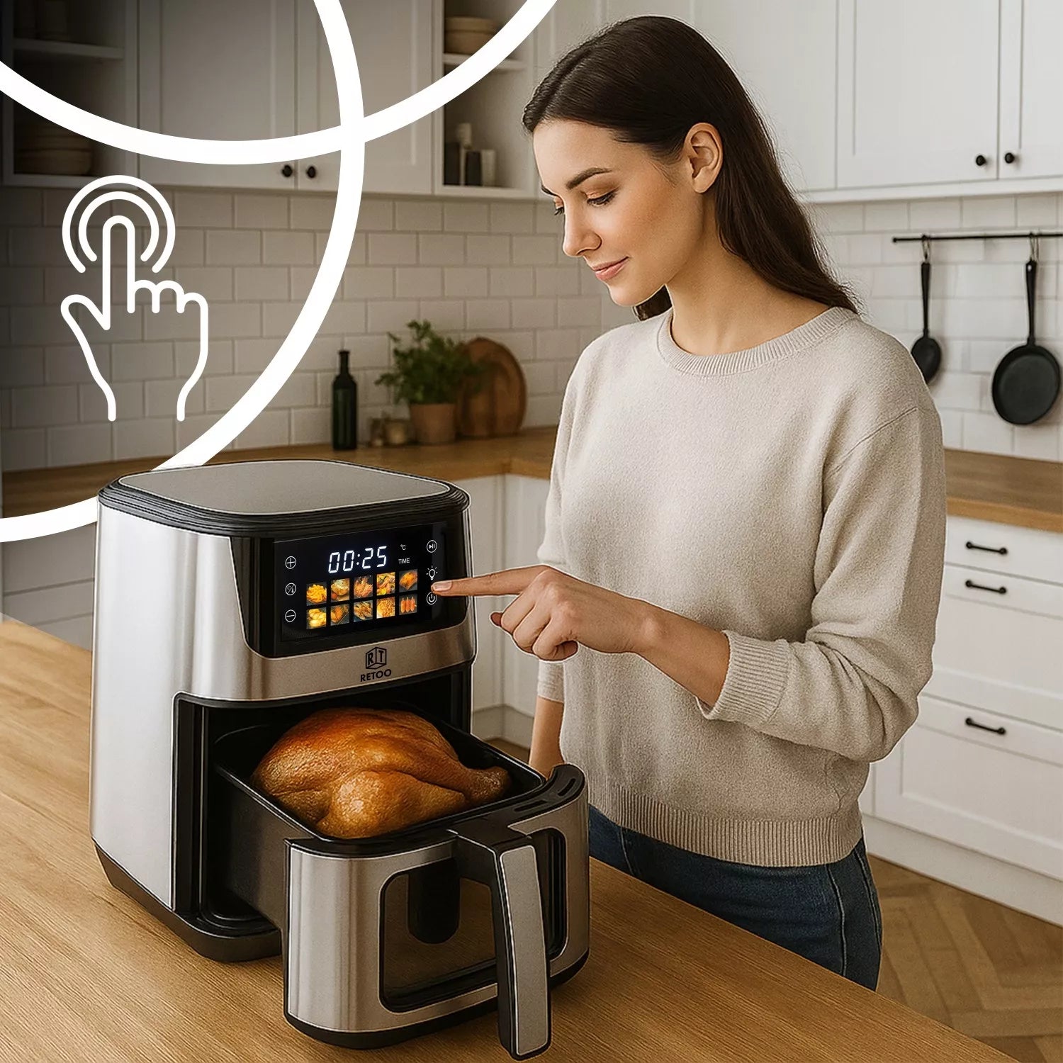 RETOO AIR FRYER gruzdintuvė be riebalų 6,5 l, 1800 W, 10 programų