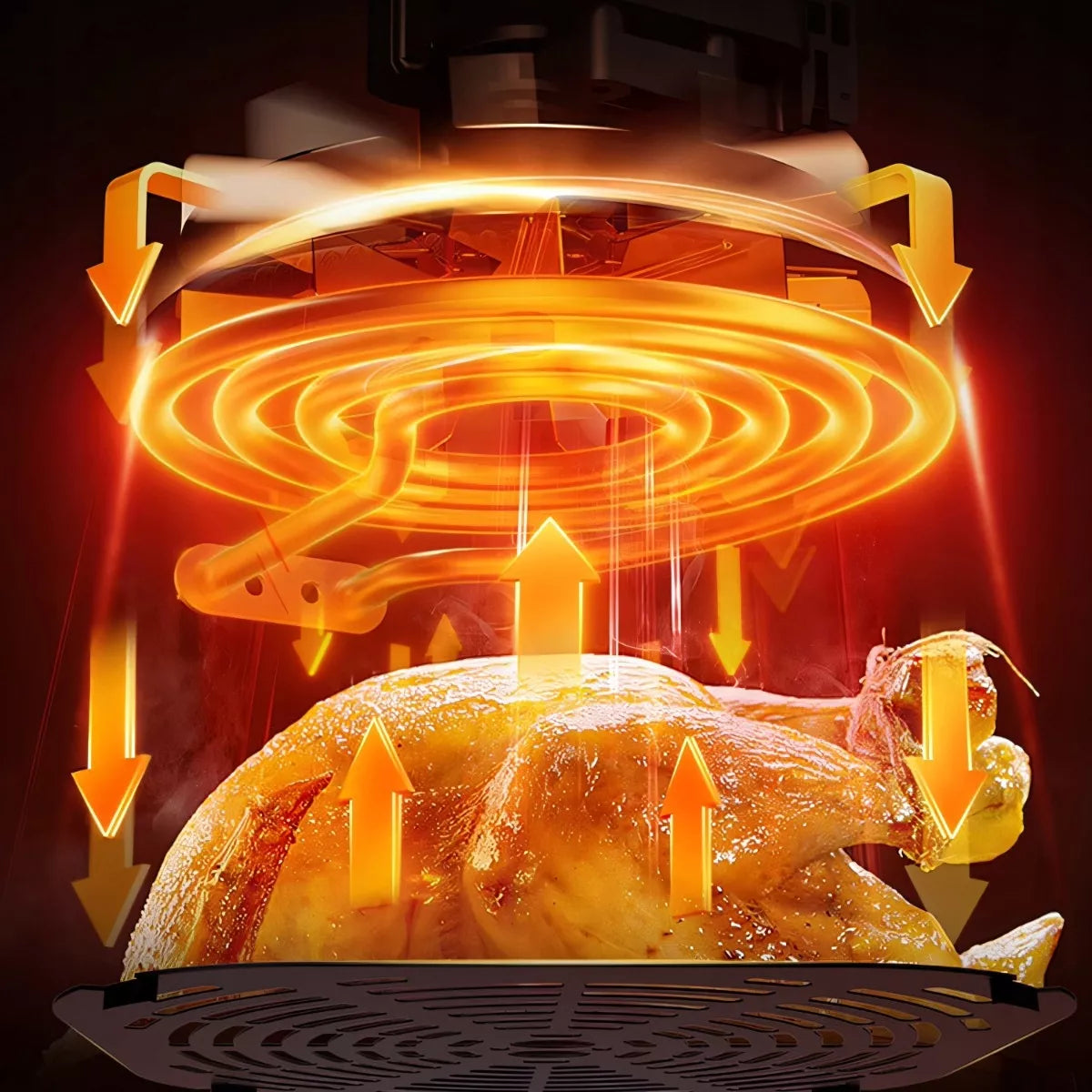 Moderni RETOO oro gruzdintuvė naudoja karšto oro cirkuliacijos technologiją, kuri užtikrina tolygų ingredientų kepimą iš visų pusių. Tai leidžia mėgautis traškiomis bulvytėmis, sultinga mėsa ar keptomis daržovėmis, kurie yra žymiai sveikesni nei kepti tradiciniu būdu. Intuityvus jutiklinis ekranas su 10 automatinių programų leidžia lengvai paruošti įvairius patiekalus: nuo kepsnių ir picų iki keptų žuvų ar bandelių, pasirenkant optimalų laiką ir temperatūrą vos vienu palietimu.