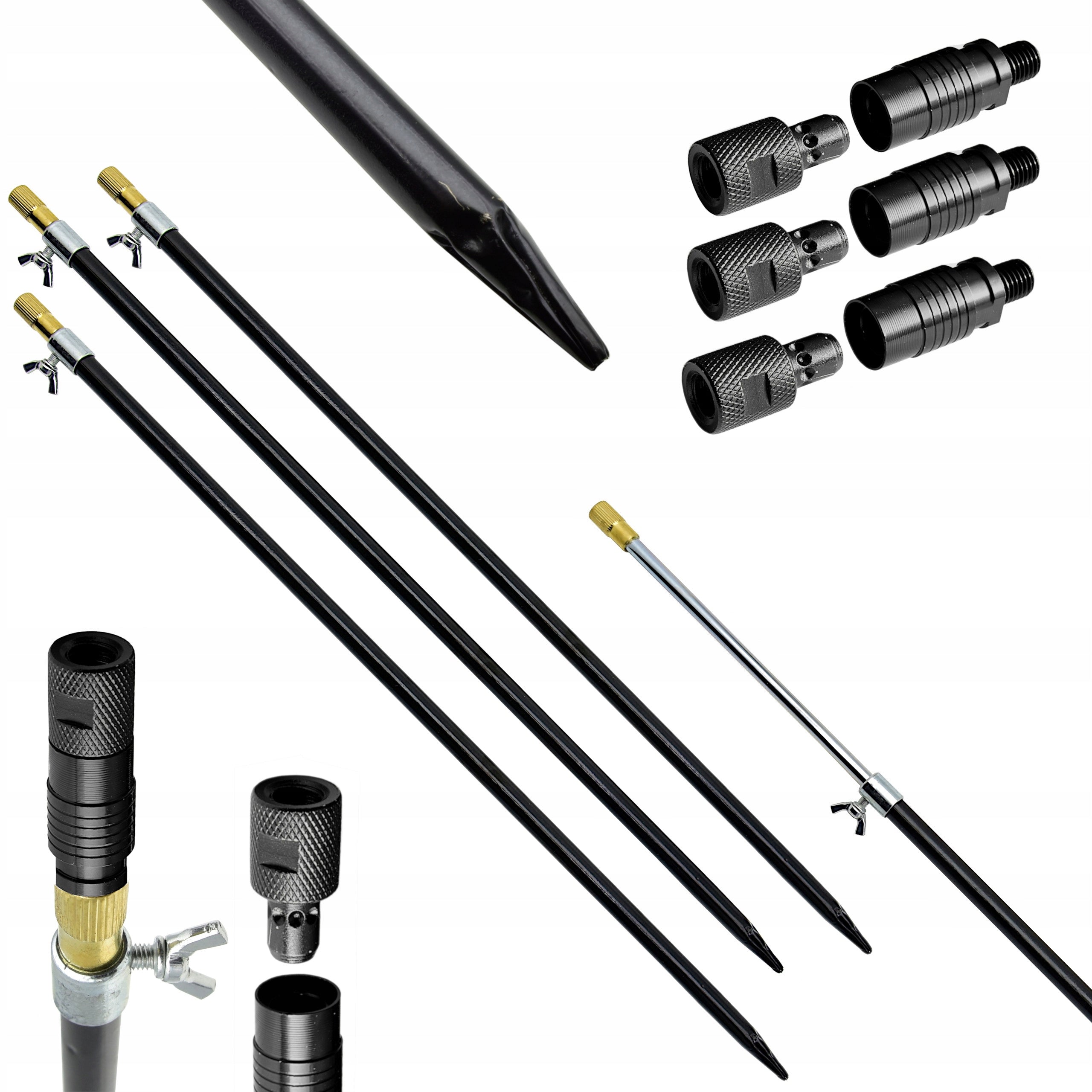 - 3 x teleskopiniai meškerių stiebai (nerūdijančio plieno, reguliuojamas ilgis 54-95 cm).