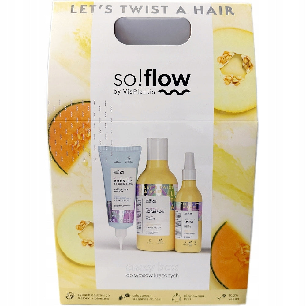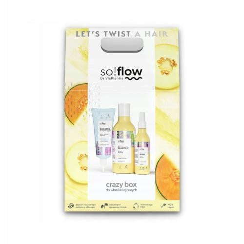 So!flow rinkinys „Crazy Box“ yra puikus pasirinkimas tiems, kurie ieško kompleksinės priežiūros garbanotiems plaukams. Kiekvienas rinkinio komponentas sukurtas atsižvelgiant į specifinius garbanotų plaukų poreikius. Naudodami šias priemones, galėsite džiaugtis stipresnėmis, labiau sudrėkintomis ir lengviau suvaldomomis garbanomis, kurios atrodys sveikai ir spindės natūraliu blizgesiu. Linija apjungia natūralius augalinius ekstraktus ir pažangias plaukų priežiūros technologijas.