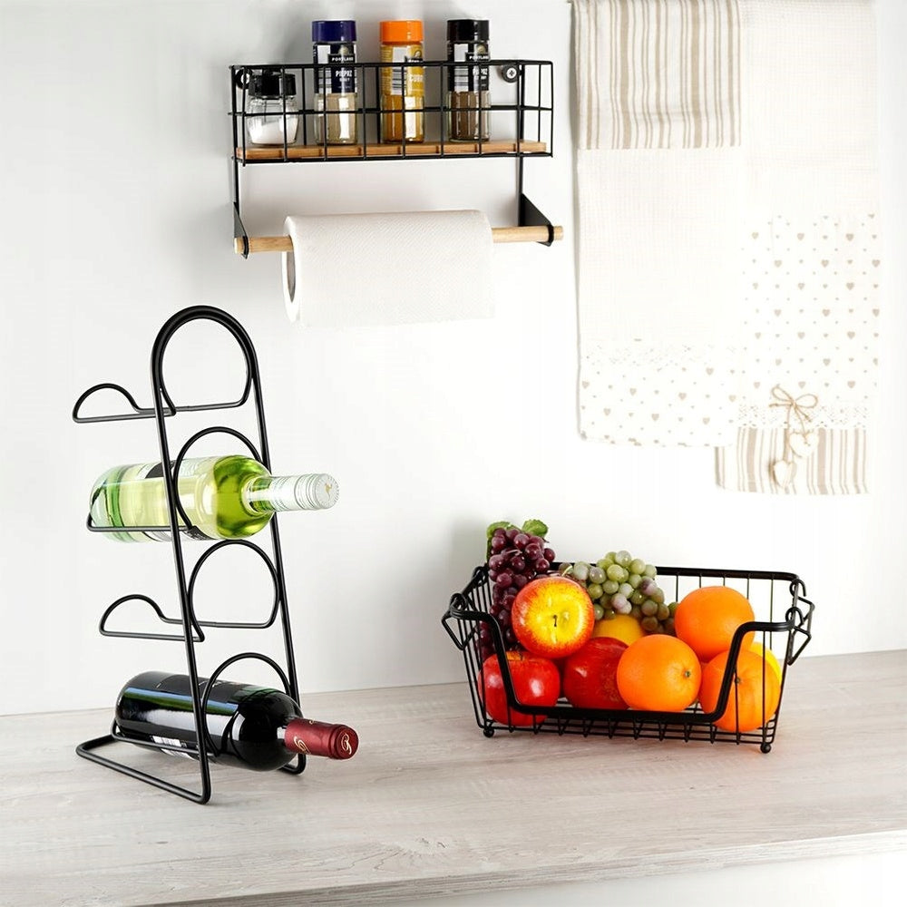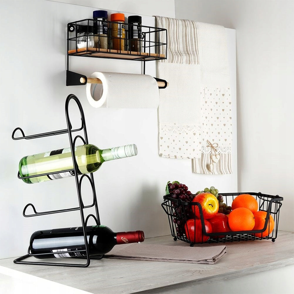 Šis laikiklis yra puikus pasirinkimas tiems, kurie vertina funkcionalumą ir modernų dizainą. Pagamintas iš tvirto, juodo metalo su milteliniu dažymu, jis garantuoja ilgaamžiškumą ir atsparumą korozijai. Bambuko medienos detalės suteikia gaminiui šilumos ir natūralumo, puikiai derėdamos prie pramoninio (loft) ar modernaus stiliaus interjerų. Jo geometrinė forma ir minimalistinis dizainas leis jam lengvai įsilieti į jūsų virtuvės aplinką, suteikiant jai išbaigtumo ir elegancijos. Tai originalus Vilde prekės ženklo produktas, sukurtas pagal europinius standartus.