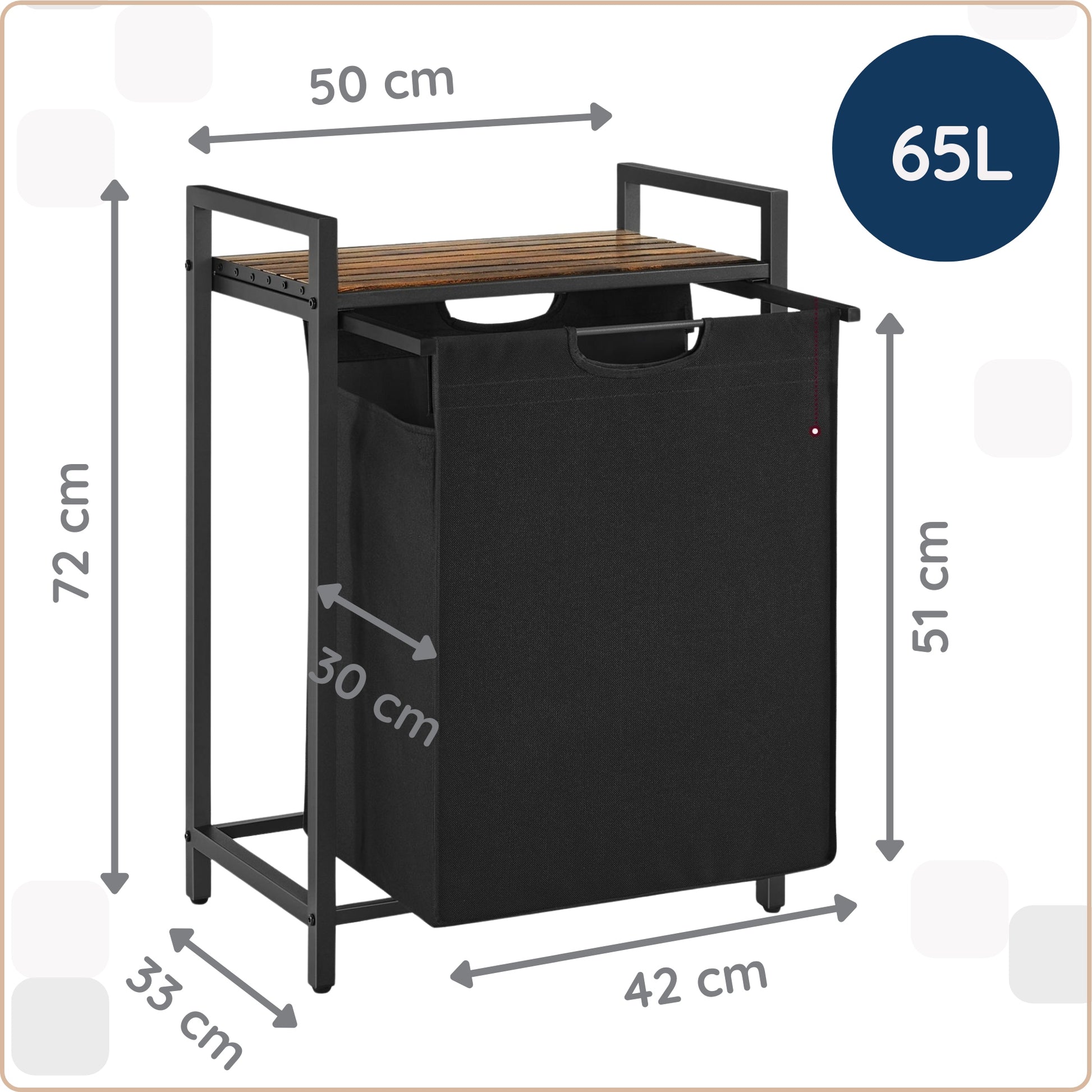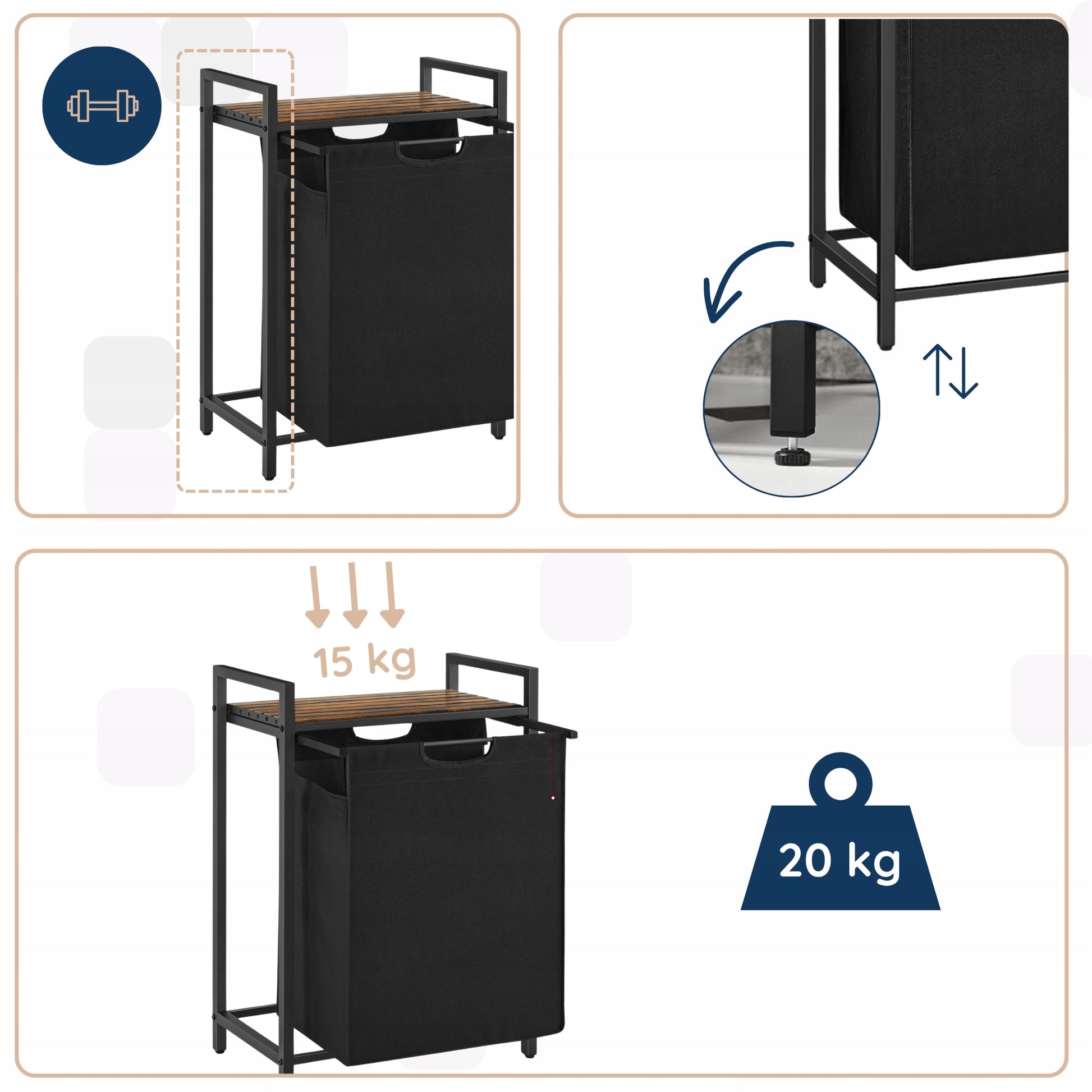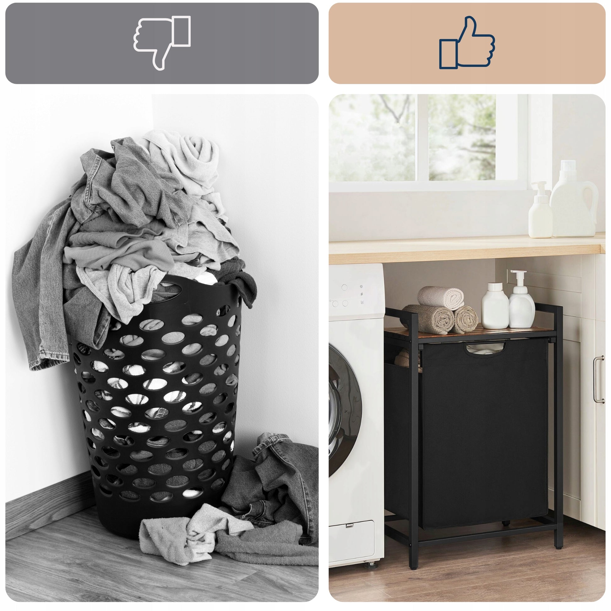 Šis modernus, vieno skyriaus 4CONVY skalbinių konteineris idealiai tinka bet kokiai patalpai – ar tai būtų skalbykla, vonios kambarys, ar miegamasis. Naudokite jį tvarkai palaikyti ten, kur reikia papildomos vietos. Užbaikite savo lofto, industrinį ar rustikalinį interjerą su šiuo stilingu skalbinių krepšiu ir pamirškite lūžtančius plastikinius ar vytelių indus. Jo matmenys (plotis 50 cm, aukštis 72 cm, gylis 33 cm) ir 65 litrų talpa leis sutalpinti didelį kiekį skalbinių. Viršutinė lentynėlė atlaiko iki 20 kg svorį, o pats krepšys – iki 6 kg, kas garantuoja jo patvarumą.
