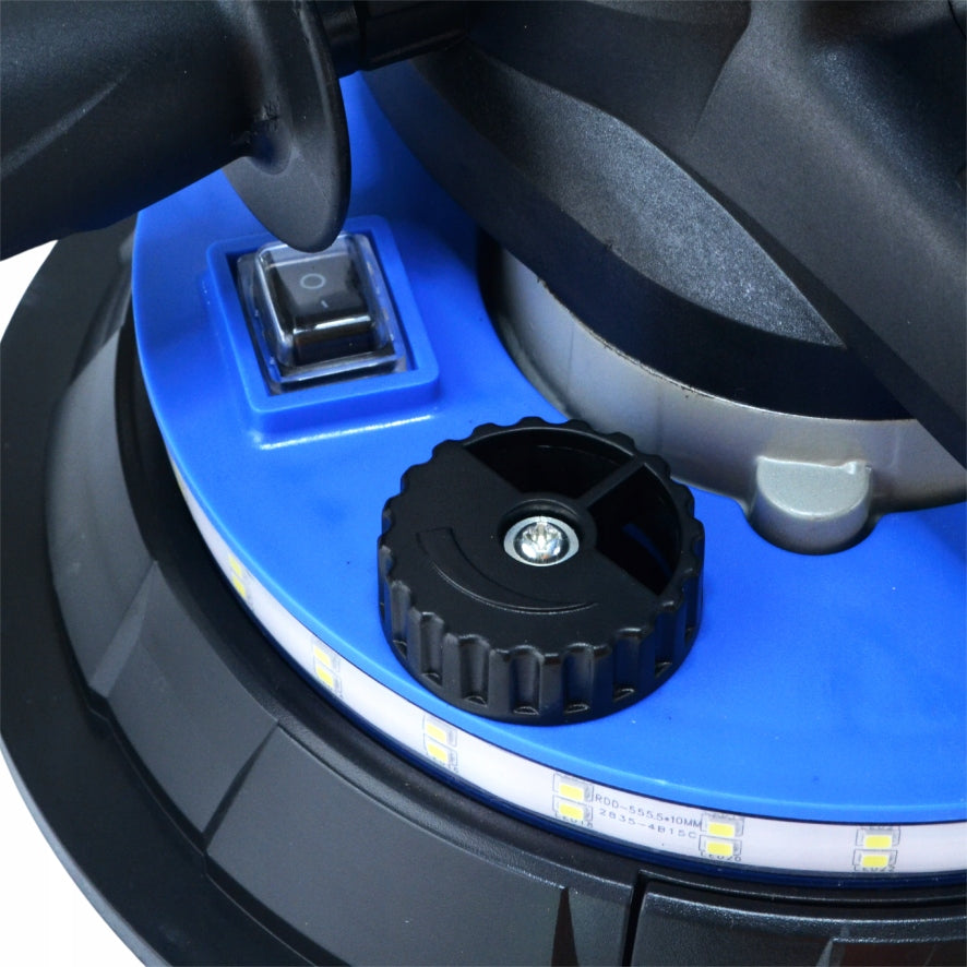 Prietaiso ypatybė – integruotas 360° LED apšvietimas aplink šlifavimo diską. Tai leidžia tiksliai matyti kiekvieną šlifuojamą plotelį net ir esant prastam apšvietimui ar kampuose, eliminuojant poreikį naudoti papildomus šviesos šaltinius. Šis sprendimas garantuoja didesnį tikslumą ir padeda lengviau pasiekti nepriekaištingą paviršiaus lygumą, užtikrinant aukščiausios kokybės rezultatą kiekvieną kartą. Šlifuoklis yra tinkamas tiek profesionaliam, tiek mėgėjiškam naudojimui.