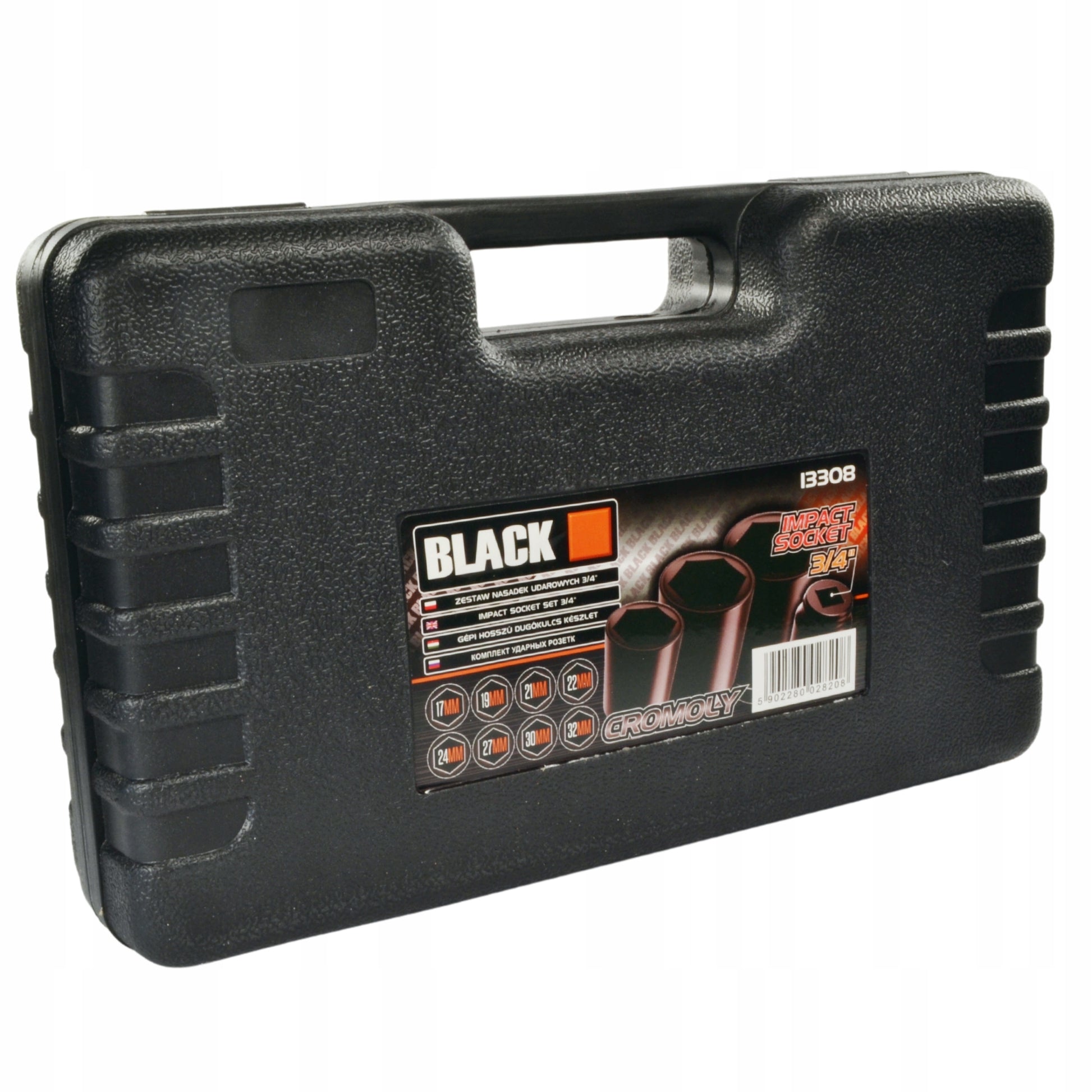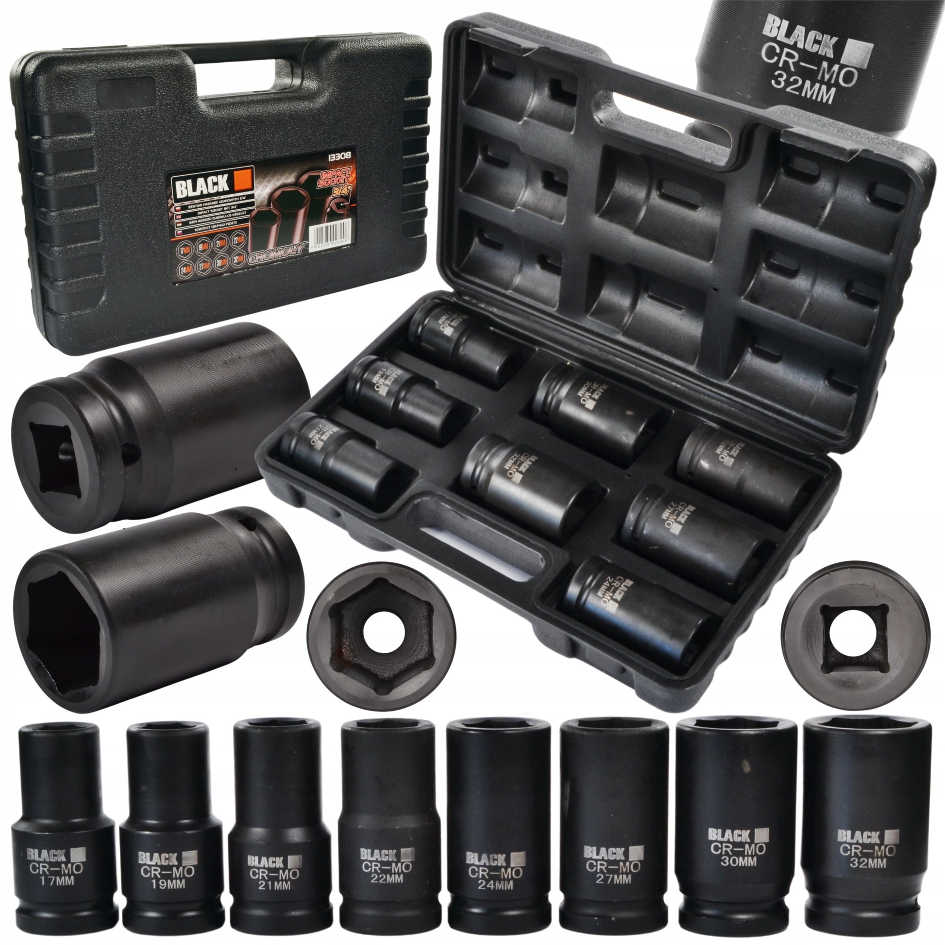 Smūginės terklinės galvutės, smūginių terklinės galvučių rinkinys 3/4" 17,19,21,22,24,27,30,32 BLACK